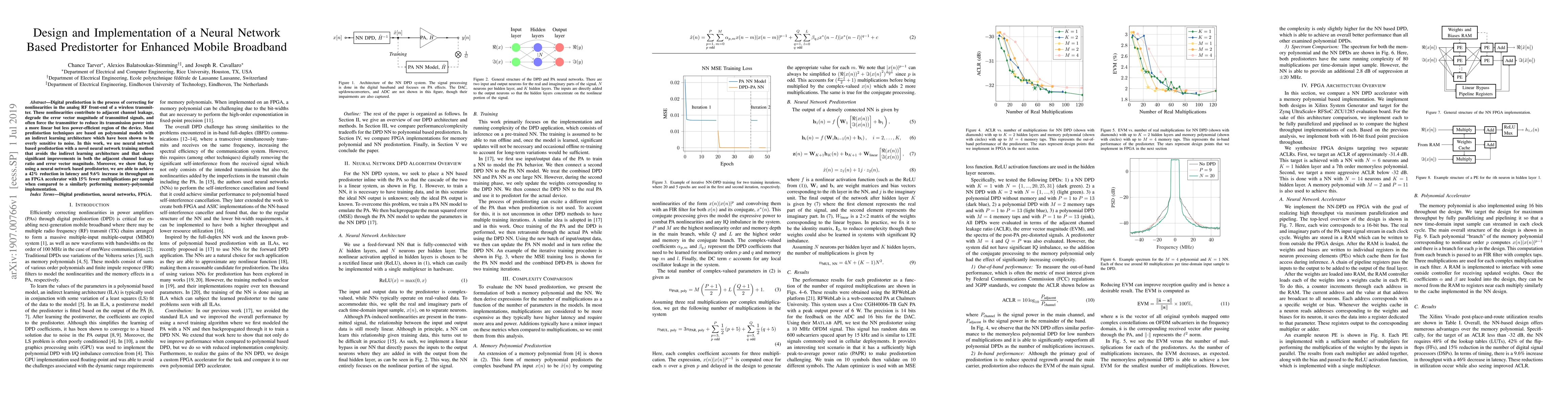 Digital predistortion is the process of correcting for nonlinearities in the analog RF front-end of a wireless transmitter. These nonlinearities contribute to adjacent channel leakage, degrade the error vector magnitude of transmitted signals, and often force the transmitter to reduce its transmission power into a more linear but less power-efficient region of the device. Most predistortion techniques are based on polynomial models with an indirect learning architecture which have been shown to be overly sensitive to noise. In this work, we use neural network based predistortion with a novel neural network training method that avoids the indirect learning architecture and that shows significant improvements in both the adjacent channel leakage ratio and error vector magnitude. Moreover, we show that, by using a neural network based predistorter, we are able to achieve a 42% reduction in latency and 9.6% increase in throughput on an FPGA accelerator with 15% fewer multiplications per sample when compared to a similarly performing memory-polynomial implementation.