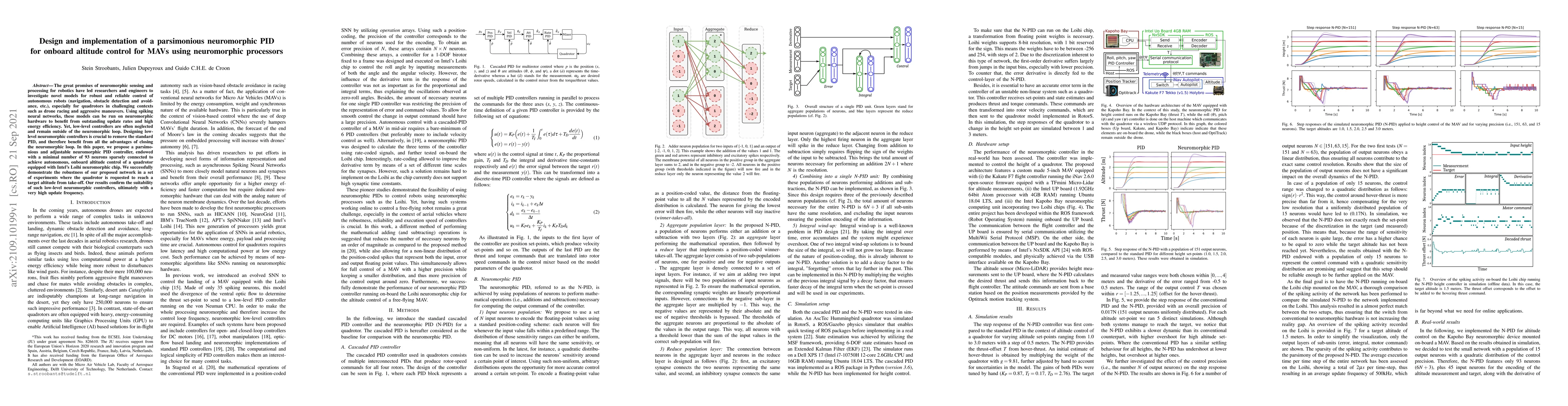 This paper proposes a parsimonious neuromorphic PID controller using spiking neural networks to achieve autonomous onboard altitude control for quadrotors. The controller, implemented on neuromorphic hardware, demonstrates robustness and high energy efficiency in experiments, showcasing the potential of neuromorphic systems for low-level control tasks.