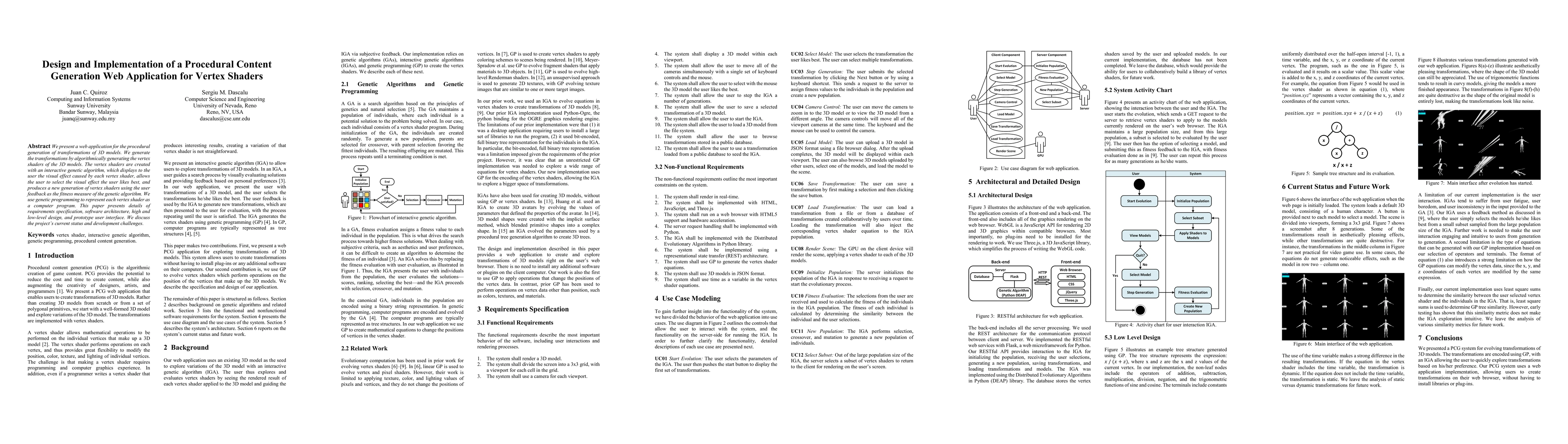 We present a web application for the procedural generation of transformations of 3D models. We generate the transformations by algorithmically generating the vertex shaders of the 3D models. The vertex shaders are created with an interactive genetic algorithm, which displays to the user the visual effect caused by each vertex shader, allows the user to select the visual effect the user likes best, and produces a new generation of vertex shaders using the user feedback as the fitness measure of the genetic algorithm. We use genetic programming to represent each vertex shader as a computer program. This paper presents details of requirements specification, software architecture, high and low-level design, and prototype user interface. We discuss the project's current status and development challenges.