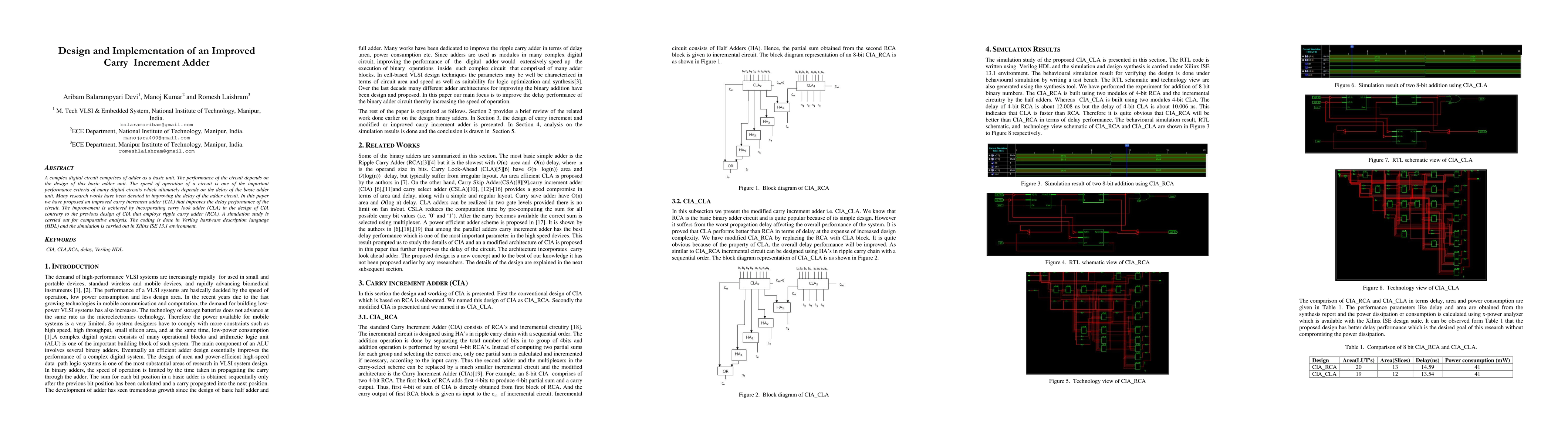 This paper proposes an improved carry increment adder (CIA) that enhances circuit delay performance by integrating a carry lookahead adder (CLA) instead of using a ripple carry adder (RCA). Simulation results in Verilog and Xilinx ISE 13.1 demonstrate the effectiveness of the new design.