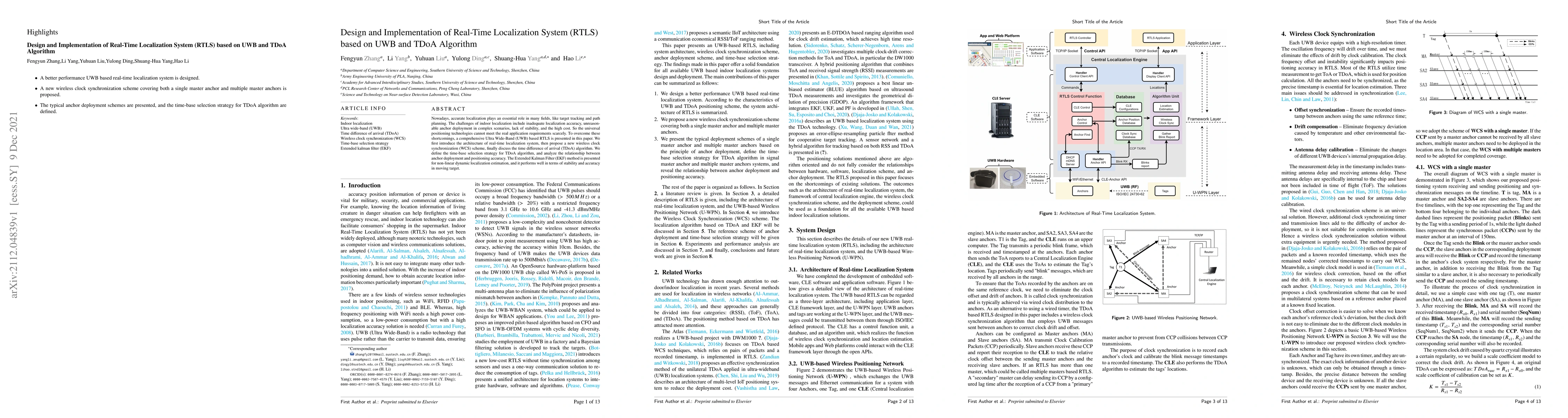 Nowadays, accurate localization plays an essential role in many fields, like target tracking and path planning. The challenges of indoor localization include inadequate localization accuracy, unreasonable anchor deployment in complex scenarios, lack of stability, and high cost. So the universal positioning technologies cannot meet the real application requirements scarcely. To overcome these shortcomings, a comprehensive Ultra Wide-Band (UWB) based RTLS is presented in this paper. We first introduce the architecture of the real-time localization system, then propose a new wireless clock synchronization (WCS) scheme, finally discuss the time difference of arrival (TDoA) algorithm. We define the time-base selection strategy for the TDoA algorithm, and analyze the relationship between anchor deployment and positioning accuracy. The Extended Kalman Filter (EKF) method is presented for non-linear dynamic localization estimation, and it performs well in terms of stability and accuracy in moving targets.