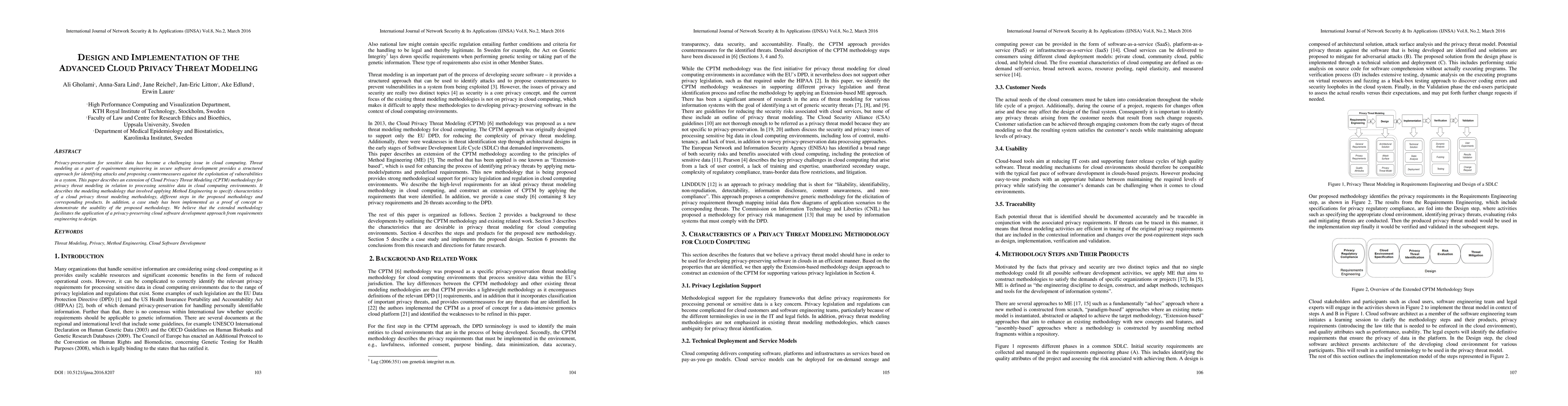 This paper extends Cloud Privacy Threat Modeling to address privacy concerns in cloud computing environments, proposing a methodology for identifying vulnerabilities and countermeasures.