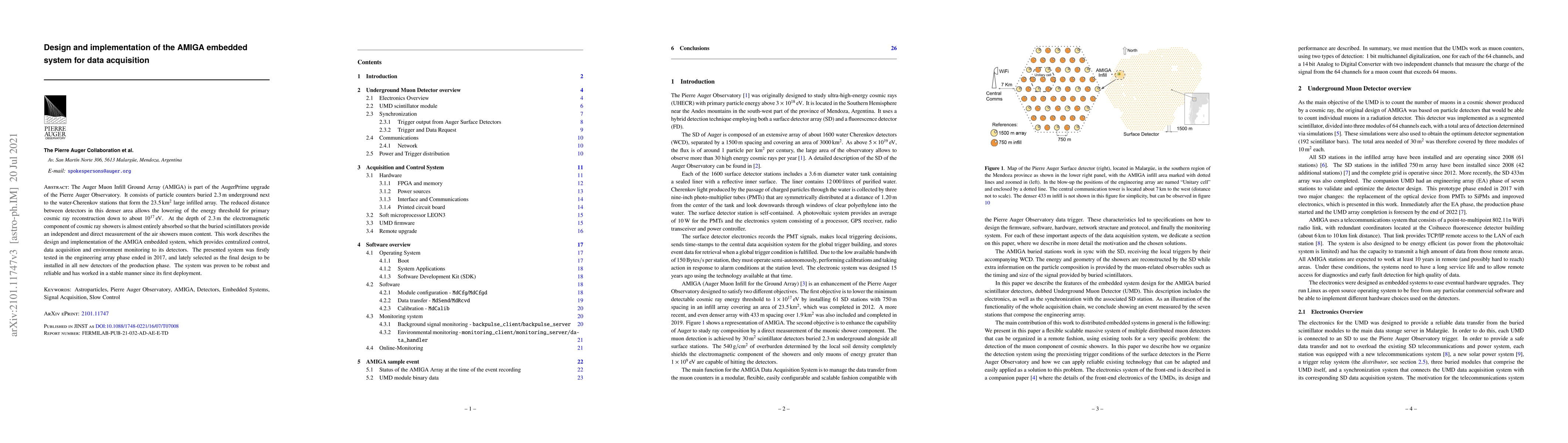 The paper details the design and implementation of the AMIGA embedded system for the AugerPrime upgrade of the Pierre Auger Observatory. The system, tested in the engineering array phase, successfully lowered the energy threshold for cosmic ray reconstruction to about 10^17 eV, providing centralized control, data acquisition, and environment monitoring for detectors. It has proven to be robust and reliable since deployment.