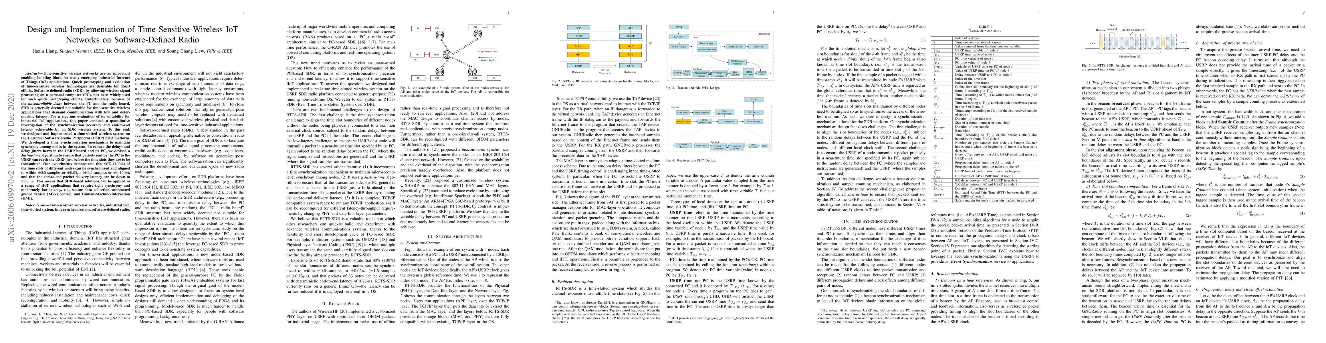 This paper investigates the feasibility of using Software-Defined Radio (SDR) for time-sensitive wireless IoT networks, demonstrating a time-slotted system on the USRP platform with a synchronization mechanism and a Just-in-time algorithm. Experiments show 90% of time slots can be synchronized within ±0.5 samples and end-to-end latency as low as 3.75ms, indicating SDR's potential for industrial IoT applications requiring tight synchrony.