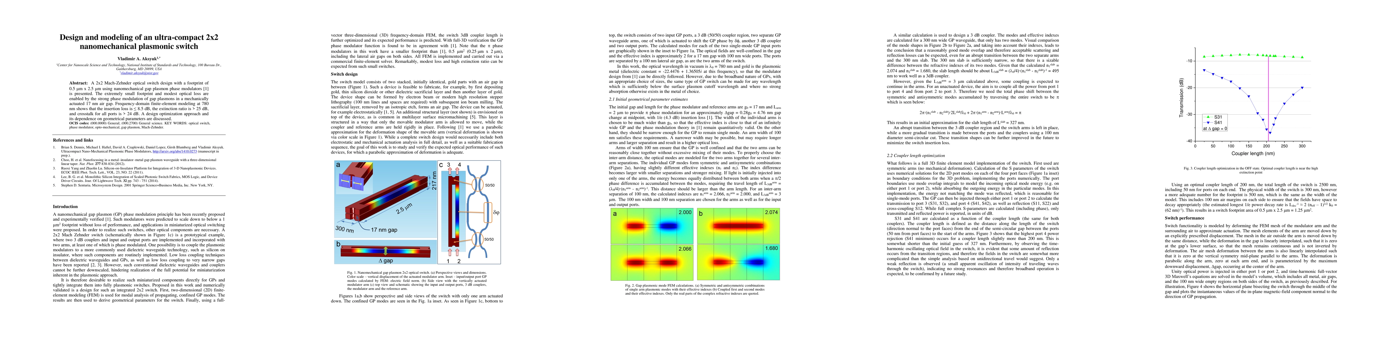 Researchers have designed an ultra-compact nanomechanical plasmonic switch with a footprint of 0.5 μm x 2.5 μm, featuring low optical loss and high extinction ratio.