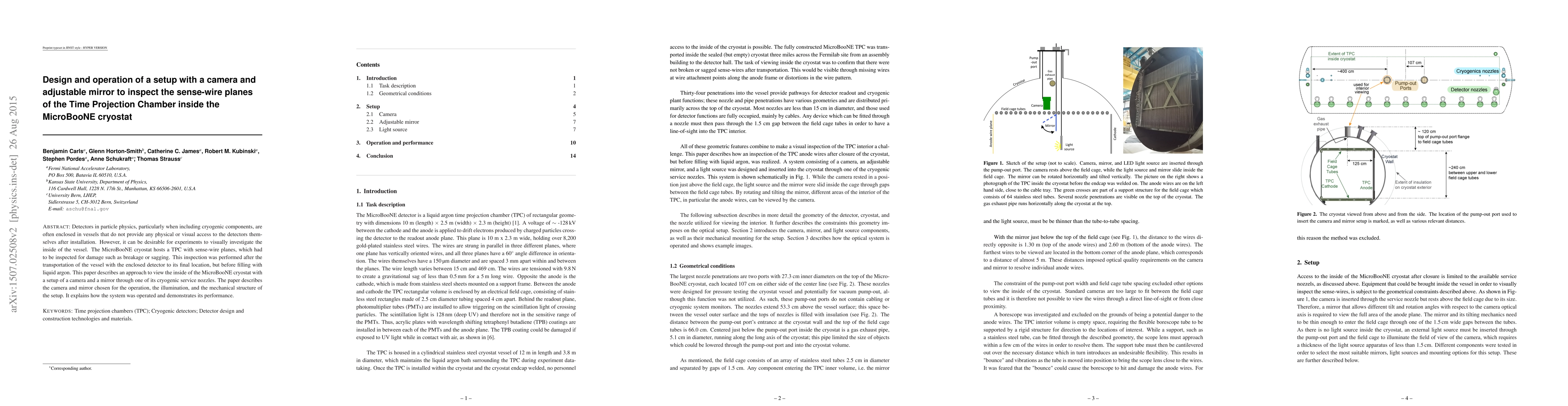 Researchers developed a camera-mirror setup to visually inspect inside the MicroBooNE cryostat, allowing them to investigate the TPC's sense-wire planes without damaging the vessel.