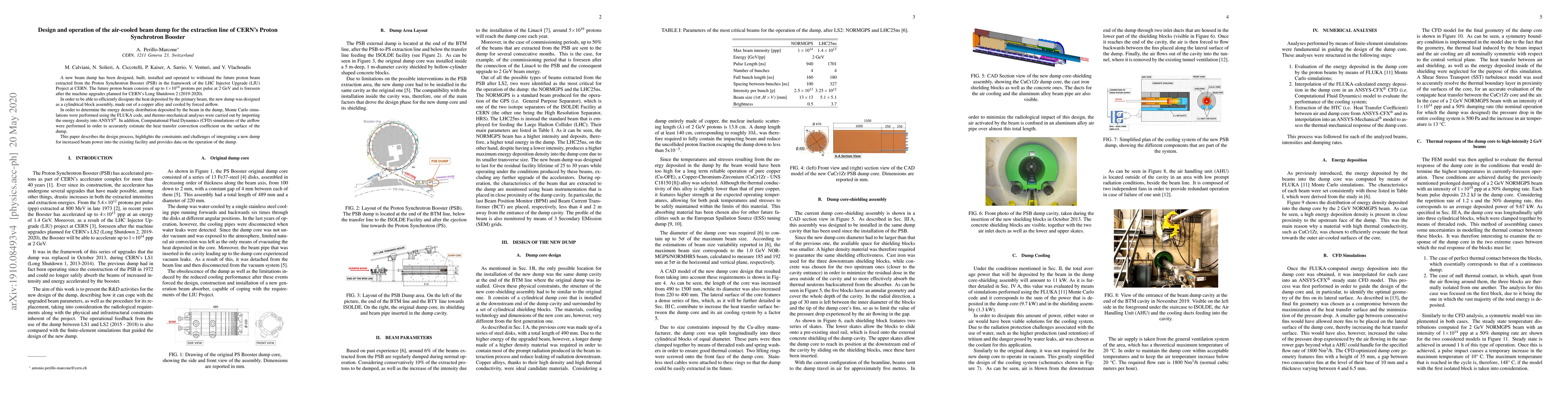 A new beam dump has been designed, built, installed and operated to withstand the future proton beam extracted from the Proton Synchrotron Booster (PSB) in the framework of the LHC Injector Upgrade (LIU) Project at CERN, consisting of up to 1E14 protons per pulse at 2 GeV, foreseen after the machine upgrades planned for CERN's Long Shutdown 2 (2019-2020). In order to be able to efficiently dissipate the heat deposited by the primary beam, the new dump was designed as a cylindrical block assembly, made out of a copper alloy and cooled by forced airflow. In order to determine the energy density distribution deposited by the beam in the dump, Monte Carlo simulations were performed using the FLUKA code, and thermo-mechanical analyses were carried out by importing the energy density into ANSYS. In addition, Computational Fluid Dynamics (CFD) simulations of the airflow were performed in order to accurately estimate the heat transfer convection coefficient on the surface of the dump. This paper describes the design process, highlights the constraints and challenges of integrating a new dump for increased beam power into the existing facility and provides data on the operation of the dump.