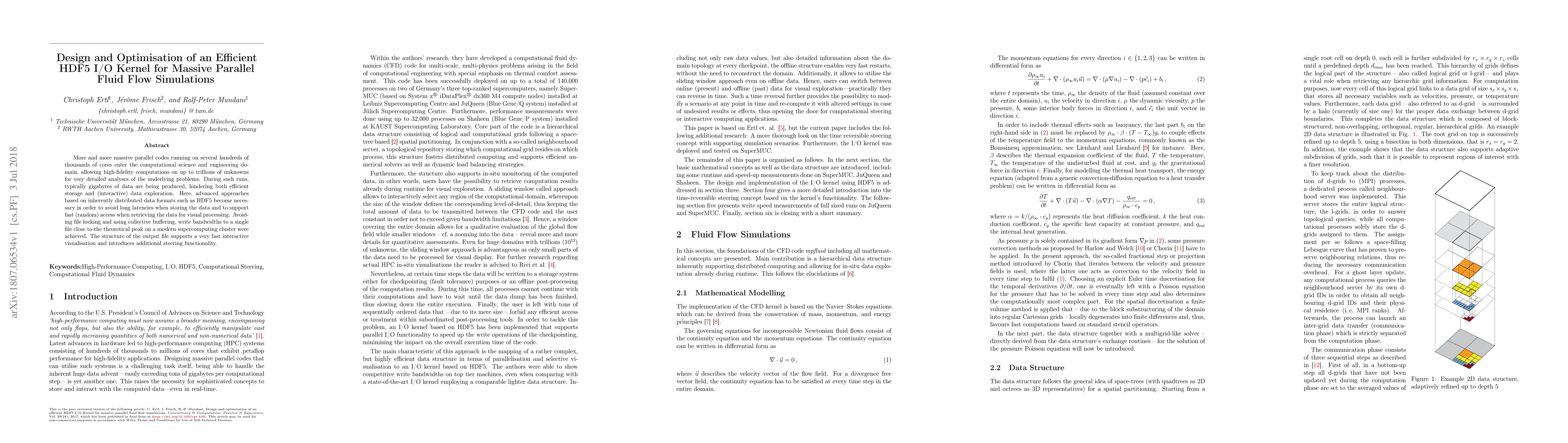 More and more massive parallel codes running on several hundreds of thousands of cores enter the computational science and engineering domain, allowing high-fidelity computations on up to trillions of unknowns for very detailed analyses of the underlying problems. During such runs, typically gigabytes of data are being produced, hindering both efficient storage and (interactive) data exploration. Here, advanced approaches based on inherently distributed data formats such as HDF5 become necessary in order to avoid long latencies when storing the data and to support fast (random) access when retrieving the data for visual processing. Avoiding file locking and using collective buffering, write bandwidths to a single file close to the theoretical peak on a modern supercomputing cluster were achieved. The structure of the output file supports a very fast interactive visualisation and introduces additional steering functionality.
