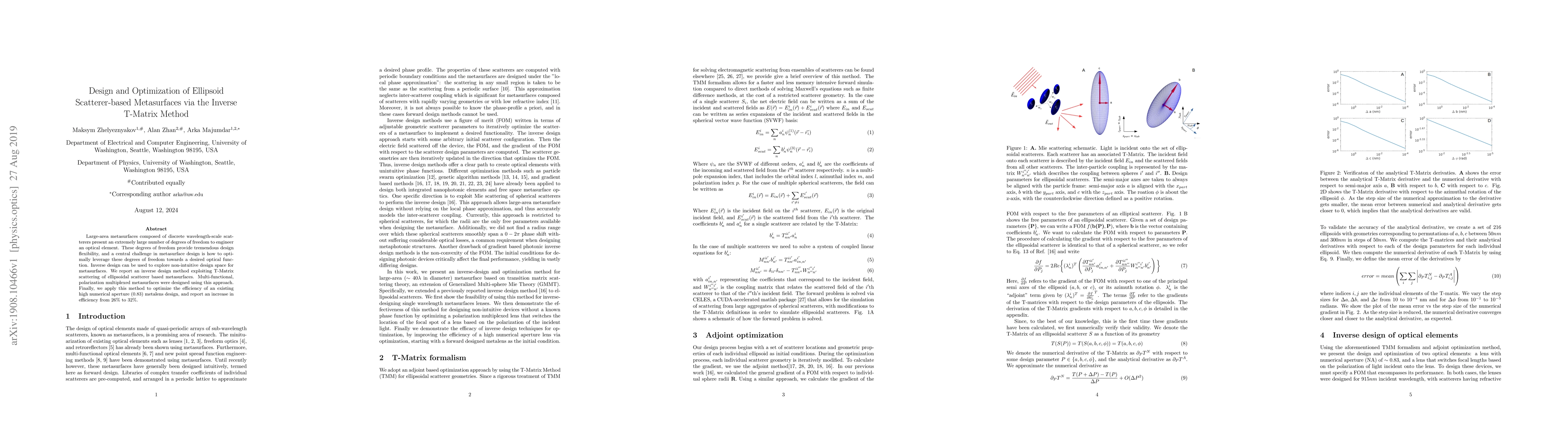 This research introduces an innovative approach to metasurface design by utilizing inverse design with T-Matrix scattering of ellipsoidal scatterers, offering improved efficiency and multifunctionality.