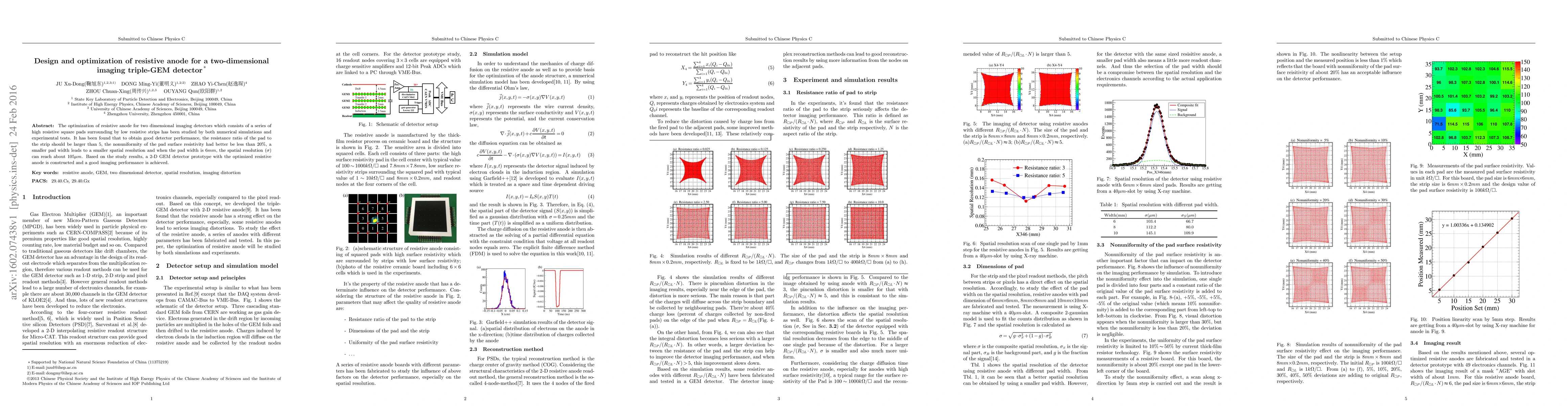 This paper optimizes a resistive anode for a 2D imaging triple-GEM detector, finding that a pad-to-strip resistance ratio greater than 5 and a pad width of 6mm yield the best spatial resolution of about 105μm. A prototype detector with these parameters demonstrates effective imaging performance.