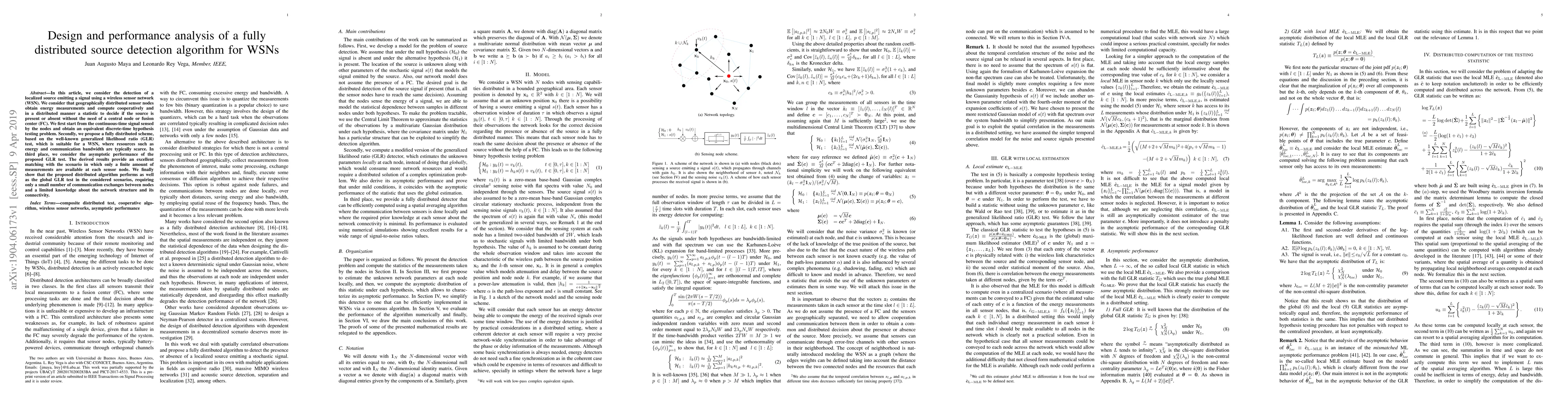 A new algorithm for detecting a localized source in a wireless sensor network (WSN) is proposed, which can perform accurately without the need of a central node or fusion center, using only limited communication exchanges between nodes.