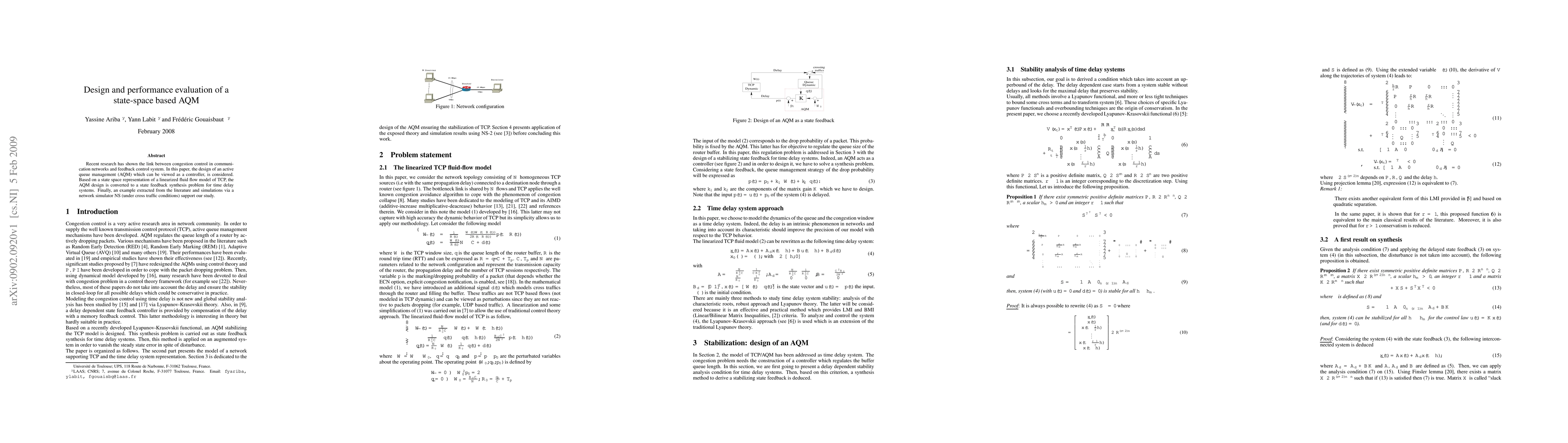 This paper designs an active queue management (AQM) system viewed as a controller using a state-space approach based on a linearized fluid flow model of TCP. Simulation results in NS show effective performance under cross traffic conditions.