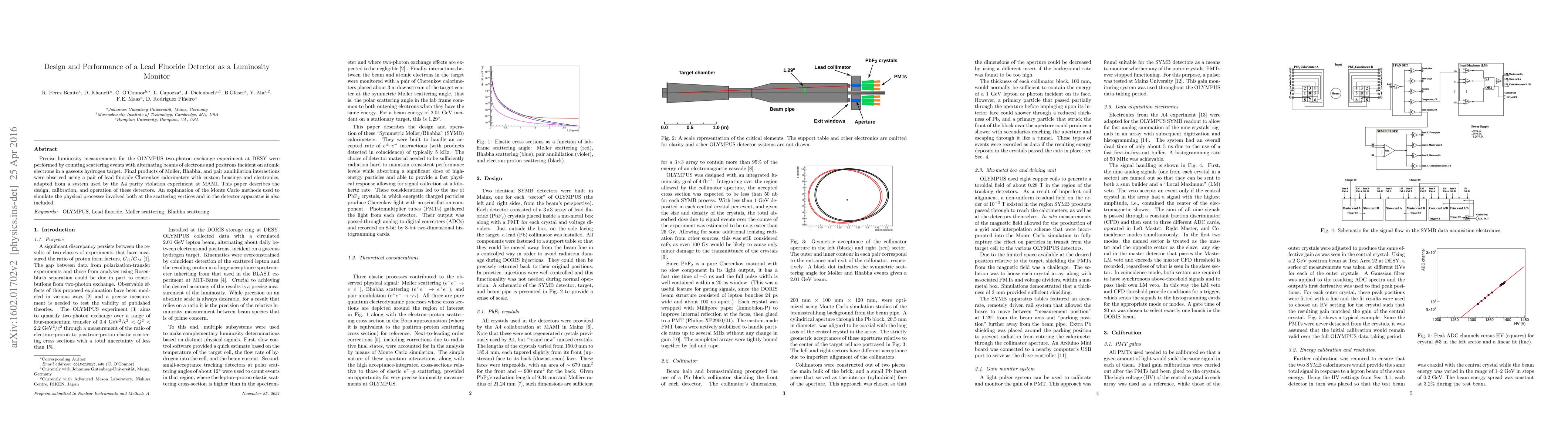 This paper details the design and calibration of lead fluoride detectors used as luminosity monitors in the OLYMPUS experiment at DESY, employing Cherenkov calorimeters to measure scattering events from electron-positron beams. The study also includes Monte Carlo simulations to model the interactions and detector performance.