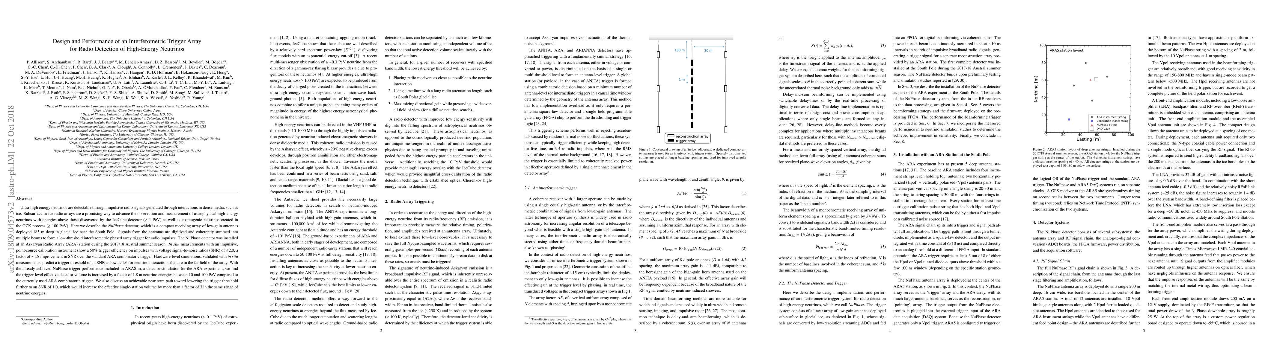 The NuPhase detector, a phased array of low-gain antennas deployed in glacial ice, enhances the detection of ultra-high energy neutrinos by improving trigger efficiency and signal-to-noise ratio. This interferometric trigger array shows a 50% efficiency for signals with SNR ≤ 2.0, significantly improving upon the standard ARA combinatoric trigger.