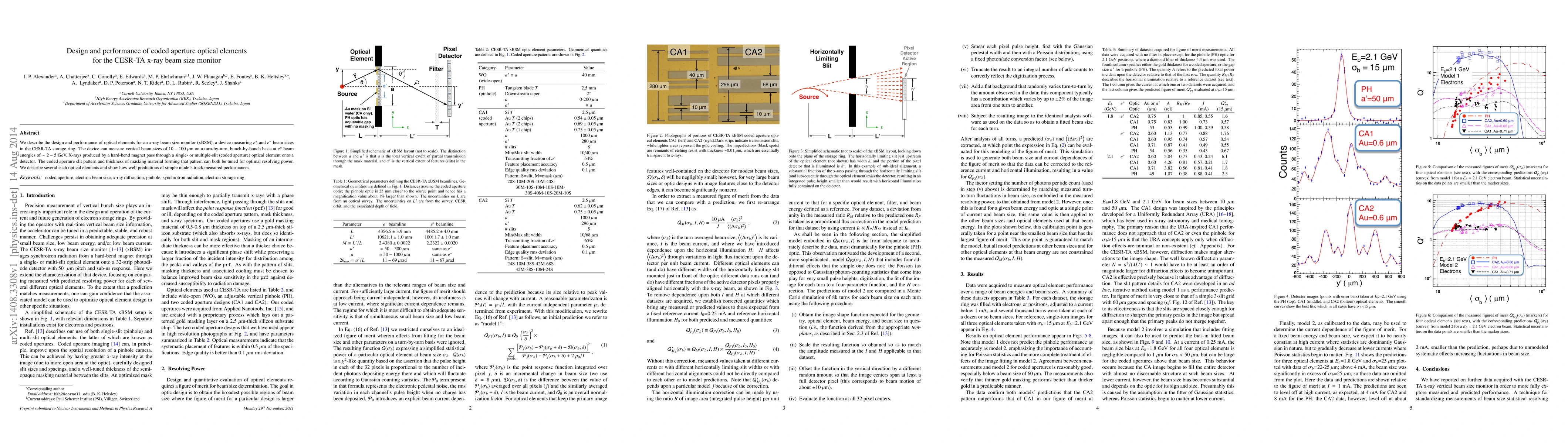 This paper details the design and operational performance of coded aperture optical elements used in an x-ray beam size monitor (xBSM) for CESR-TA, which measures electron and positron beam sizes in the storage ring. The device accurately measures vertical beam sizes in the range of $10-100~\mu$m at energies of $\sim2-5~$GeV, with tunable coded aperture patterns for optimal resolution.