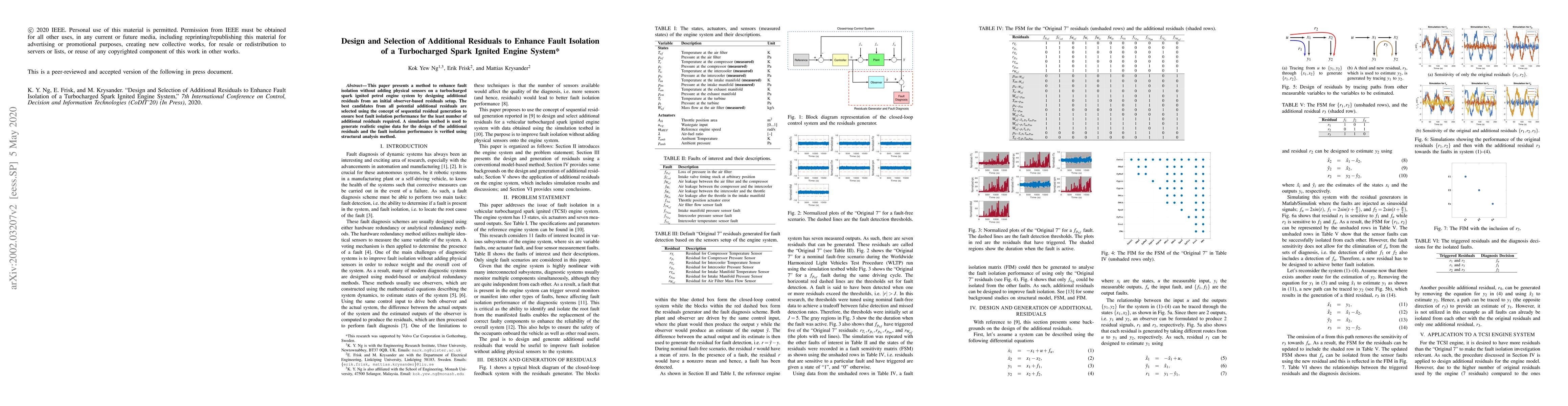 This paper proposes a method to improve fault isolation in a turbocharged spark ignited engine system by designing additional residuals from an existing observer-based setup, selecting the best candidates through sequential residual generation, and verifying the performance using a simulation testbed and structural analysis.