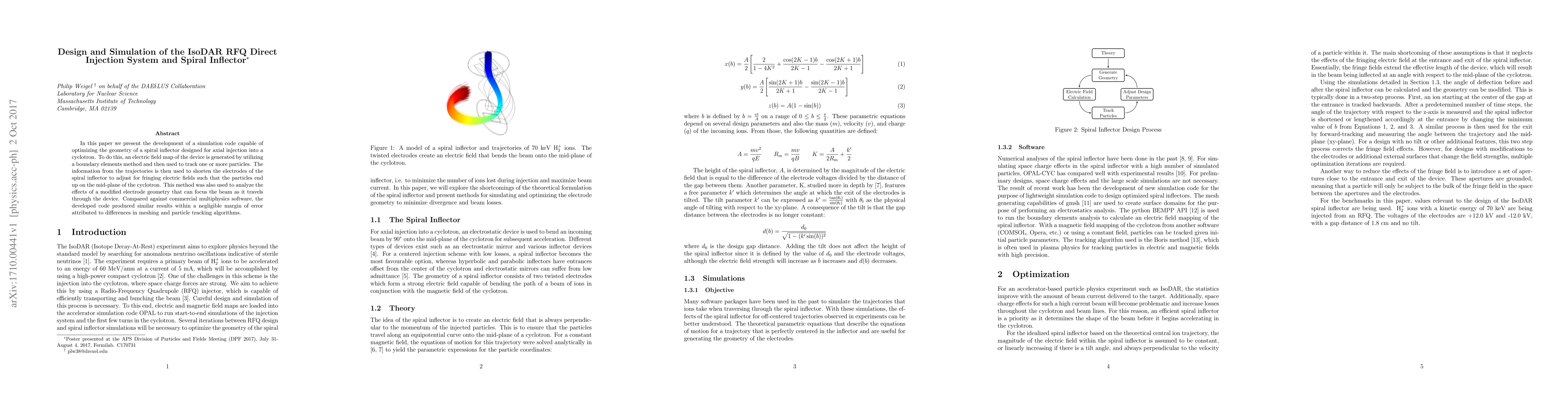 In this paper we present the development of a simulation code capable of optimizing the geometry of a spiral inflector designed for axial injection into a cyclotron. To do this, an electric field map of the device is generated by utilizing a boundary elements method and then used to track one or more particles. The information from the trajectories is then used to shorten the electrodes of the spiral inflector to adjust for fringing electric fields such that the particles end up on the mid-plane of the cyclotron. This method was also used to analyze the effects of a modified electrode geometry that can focus the beam as it travels through the device. Compared against commercial multiphysics software, the developed code produced similar results within a negligible margin of error attributed to differences in meshing and particle tracking algorithms.