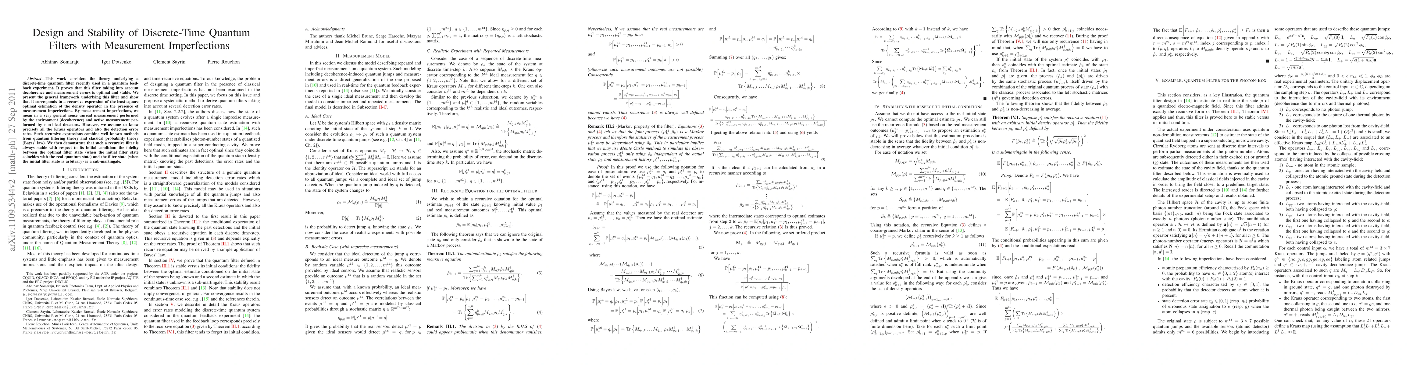 This work considers the theory underlying a discrete-time quantum filter recently used in a quantum feedback experiment. It proves that this filter taking into account decoherence and measurement errors is optimal and stable. We present the general framework underlying this filter and show that it corresponds to a recursive expression of the least-square optimal estimation of the density operator in the presence of measurement imperfections. By measurement imperfections, we mean in a very general sense unread measurement performed by the environment (decoherence) and active measurement performed by non-ideal detectors. However, we assume to know precisely all the Kraus operators and also the detection error rates. Such recursive expressions combine well known methods from quantum filtering theory and classical probability theory (Bayes' law). We then demonstrate that such a recursive filter is always stable with respect to its initial condition: the fidelity between the optimal filter state (when the initial filter state coincides with the real quantum state) and the filter state (when the initial filter state is arbitrary) is a sub-martingale.