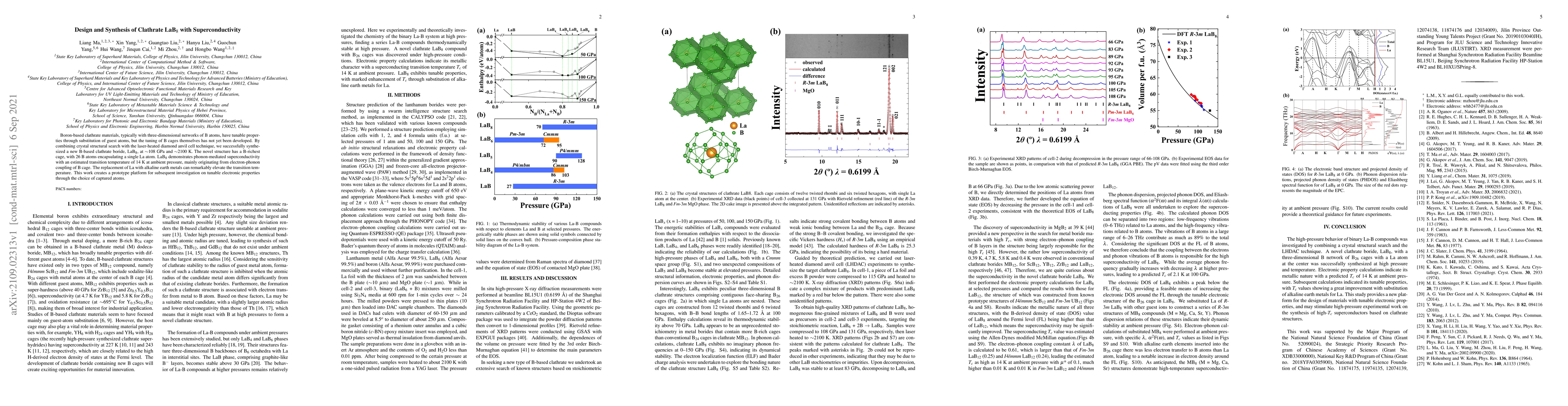 This paper reports the synthesis of a new boron-based clathrate boride, LaB8, which exhibits phonon-mediated superconductivity at 14 K. The structure features a B-rich cage encapsulating a single La atom, offering a platform for exploring tunable electronic properties.
