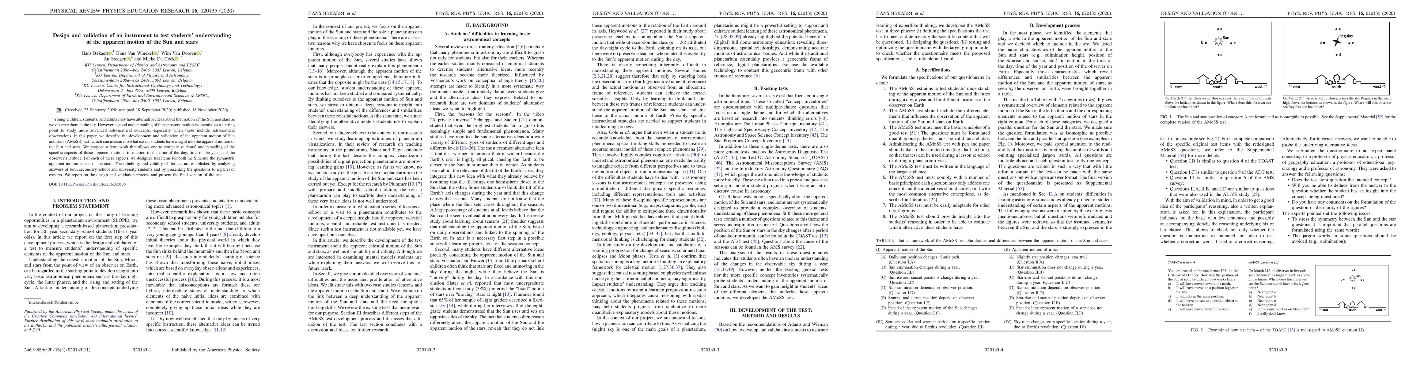 Young children, students, and adults may have alternative ideas about the motion of the Sun and stars as we observe them in the sky. However, a good understanding of this apparent motion is essential as a starting point to study more advanced astronomical concepts, especially when these include astronomical observations. In this paper, we describe the development and validation of the apparent motion of Sun and stars (AMoSS) test, which can measure to what extent students have insight into the apparent motion of the Sun and stars. We propose a framework that allows one to compare students' understanding of the specific aspects of these apparent motions in relation to the time of the day, time of the year, and the observer's latitude. For each of these aspects, we designed test items for both the Sun and the symmetric apparent motion aspect of the stars. The reliability and validity of the test are established by analyzing answers of both secondary school and university students and by presenting the questions to a panel of experts. We report on the design and validation process and present the final version of the test.