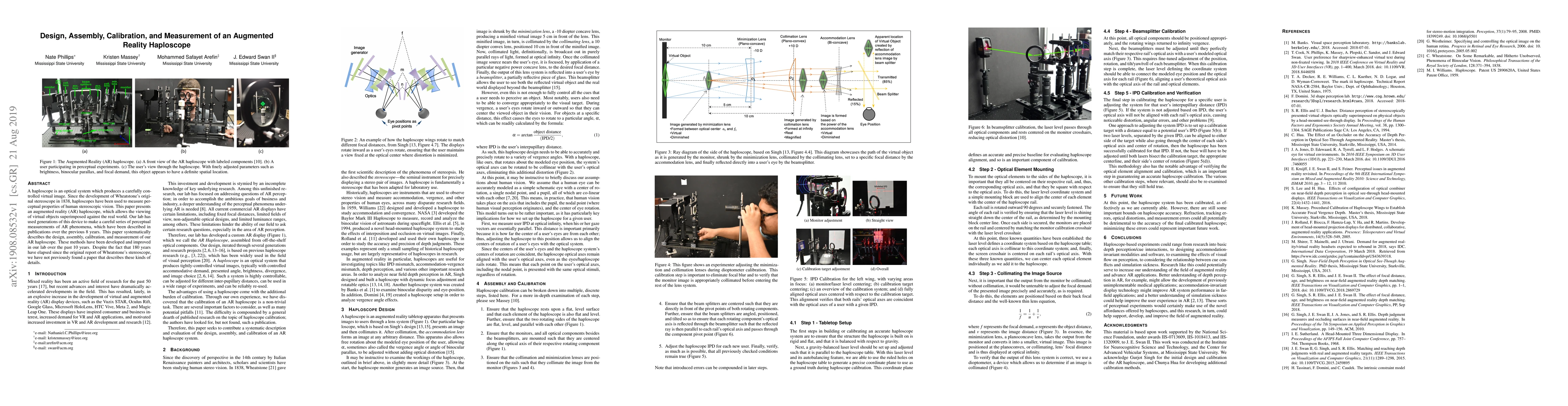 This paper meticulously details the design, assembly, calibration, and operation of an augmented reality haploscope, a device used for perceptual measurements of AR phenomena. Despite the long history of haploscopes, this paper offers unique, detailed methods developed over a decade, filling a described gap in existing literature.