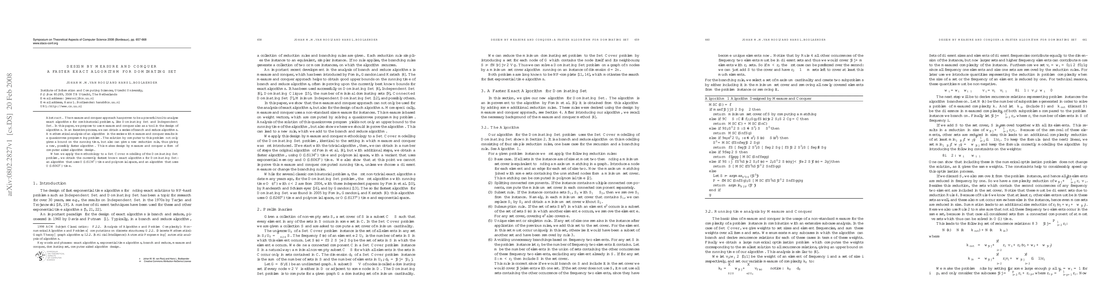 This paper introduces a measure and conquer methodology for designing faster exact algorithms, specifically for the Dominating Set problem. Applying this approach results in the fastest known algorithms, achieving $O(1.5134^n)$ and $O(1.5063^n)$ time complexities.