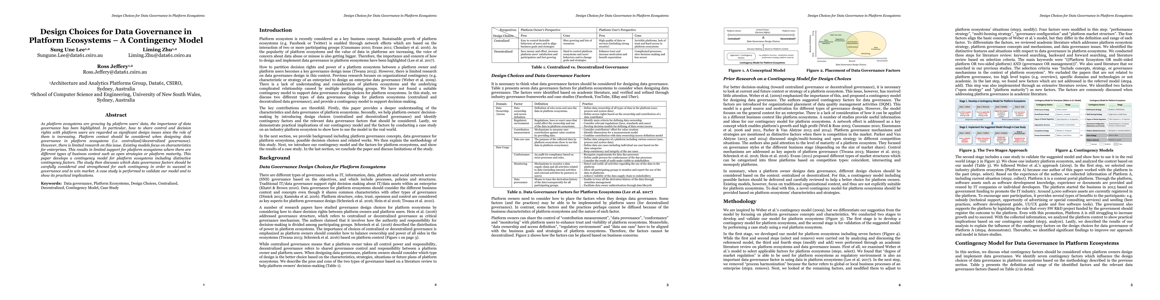 This paper develops a contingency model for data governance in platform ecosystems, emphasizing the importance of sharing control and decision rights with platform users. It proposes specific governance factors to consider based on different platform contexts, validated through a case study to illustrate practical implications.