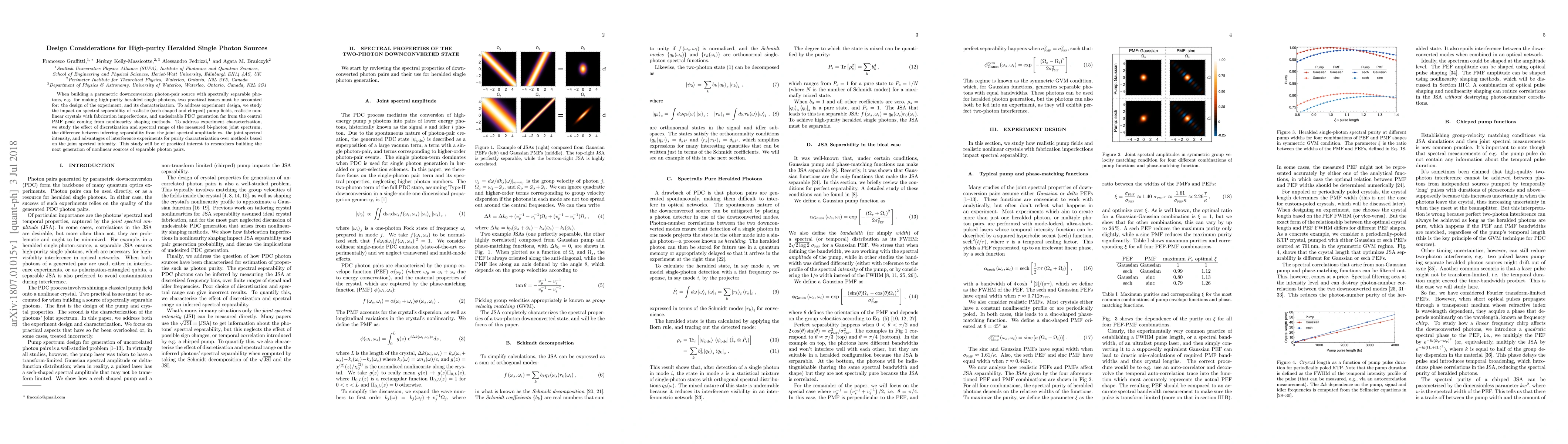 This paper examines design considerations for high-purity heralded single photon sources, focusing on the impact of realistic pump fields and crystal imperfections on spectral separability, as well as methods for characterizing the experiment through joint spectral analysis and interference experiments. The findings are crucial for developing advanced nonlinear photon-pair sources.