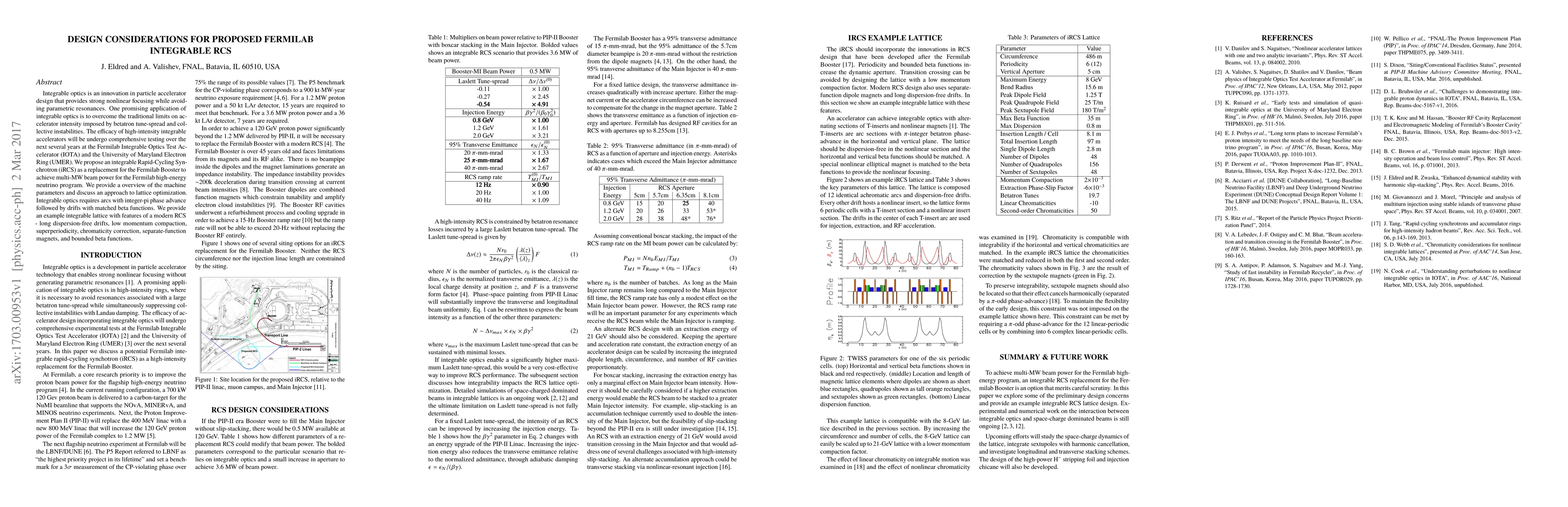 This paper proposes an integrable Rapid-Cycling Synchrotron (iRCS) to replace the Fermilab Booster, aiming for multi-MW beam power for high-energy neutrino programs. It outlines machine parameters and lattice optimization strategies, emphasizing the unique features of integrable optics to avoid traditional accelerator intensity limits.