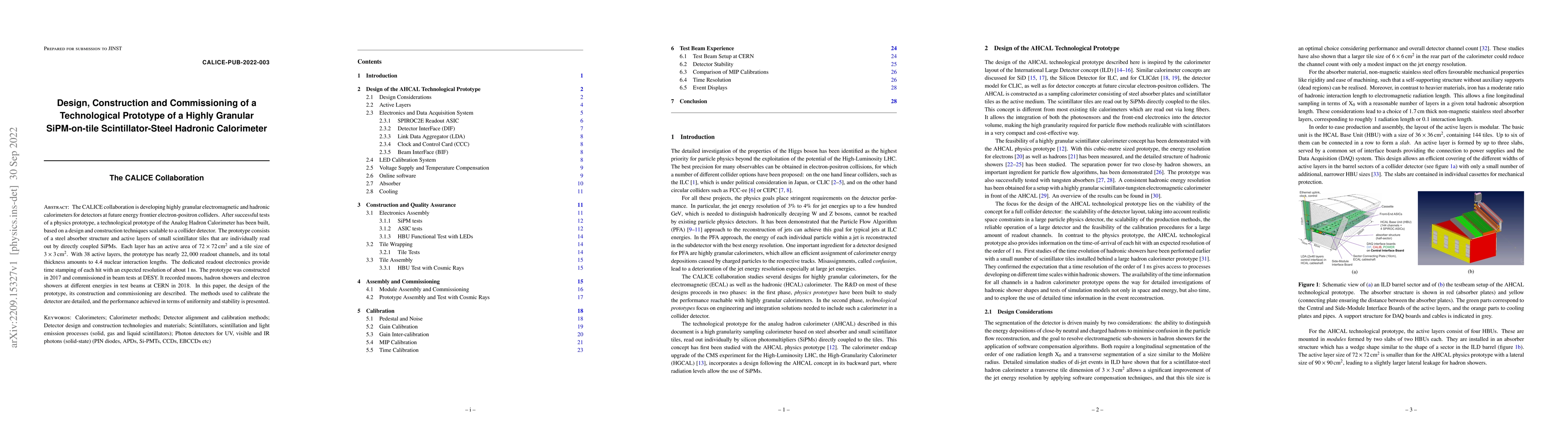 The CALICE collaboration developed a highly granular technological prototype of an analog hadronic calorimeter using SiPM-on-tile scintillator technology. The prototype, consisting of 38 layers of $3 \times 3\,{\rm cm}^{2}$ scintillator tiles coupled to SiPMs, was commissioned in 2018 and demonstrated performance in detecting muons, hadron showers, and electron showers.