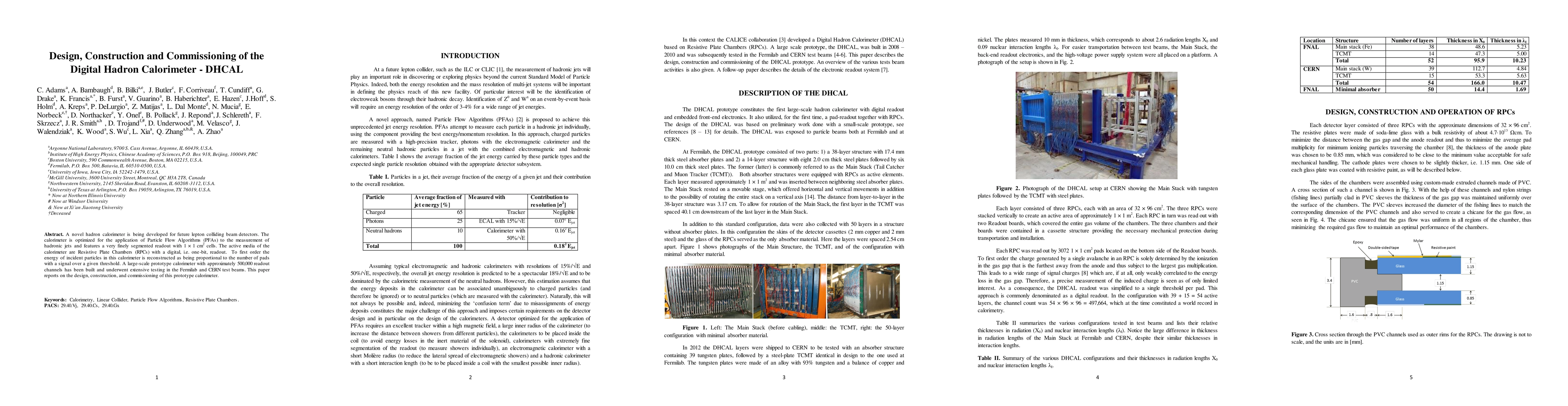 This paper details the design, construction, and commissioning of a novel digital hadron calorimeter (DHCAL) for future lepton colliders, utilizing Resistive Plate Chambers with a finely segmented readout and Particle Flow Algorithms to measure hadronic jets. A large-scale prototype was tested extensively at Fermilab and CERN.