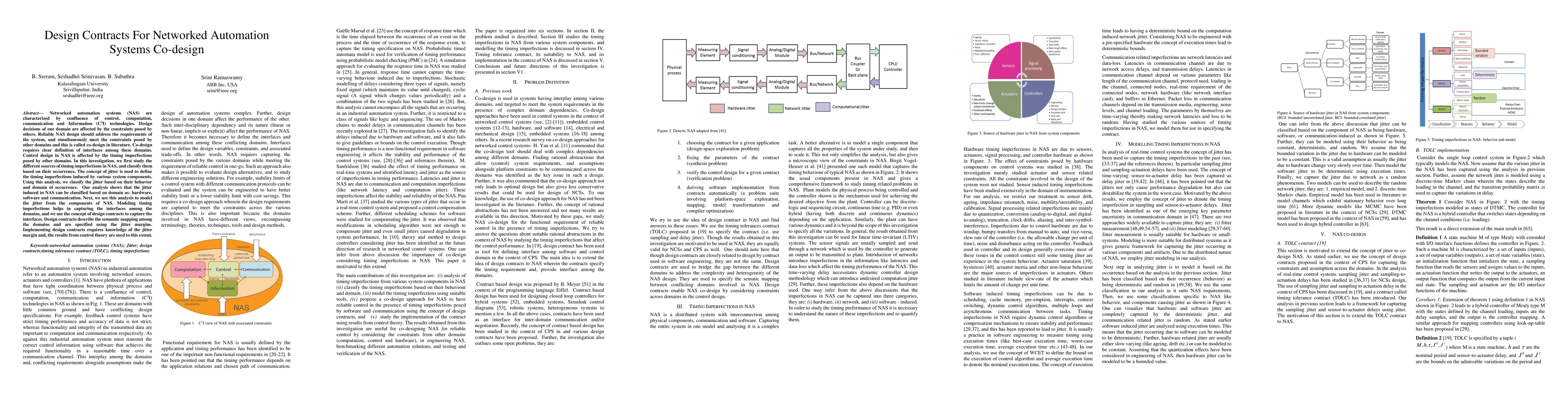 Networked automation systems (NAS) are characterized by confluence of control, computation, communication and Information (C3I) technologies. Design decisions of one domain are affected by the constraints posed by others. Reliable NAS design should address the requirements of the system, and simultaneously meet the constraints posed by other domains and this is called co-design in literature. Co-design requires clear definition of interfaces among these domains. Control design in NAS is affected by the timing imperfections posed by other domains. In this investigation, we first study the different sources of timing imperfections in NAS, and classify them based on their occurrence. The concept of jitter is used to define the timing imperfections induced by various system components. Using this analysis, we classify the jitter based on their behavior and domain of occurrence. Our analysis shows that the jitter induced in NAS can be classified based on domain as- hardware, software and communication. Next, we use this analysis to model the jitter from the components of NAS. Modeling timing imperfections helps in capturing the interfaces among the domains, and we use the concept of design contracts to capture the interfaces. Design contracts describe the semantic mapping among the domains and are specified using the jitter margins. Implementing design contracts requires knowledge of the jitter margin and, the results from control theory are used to this extent.