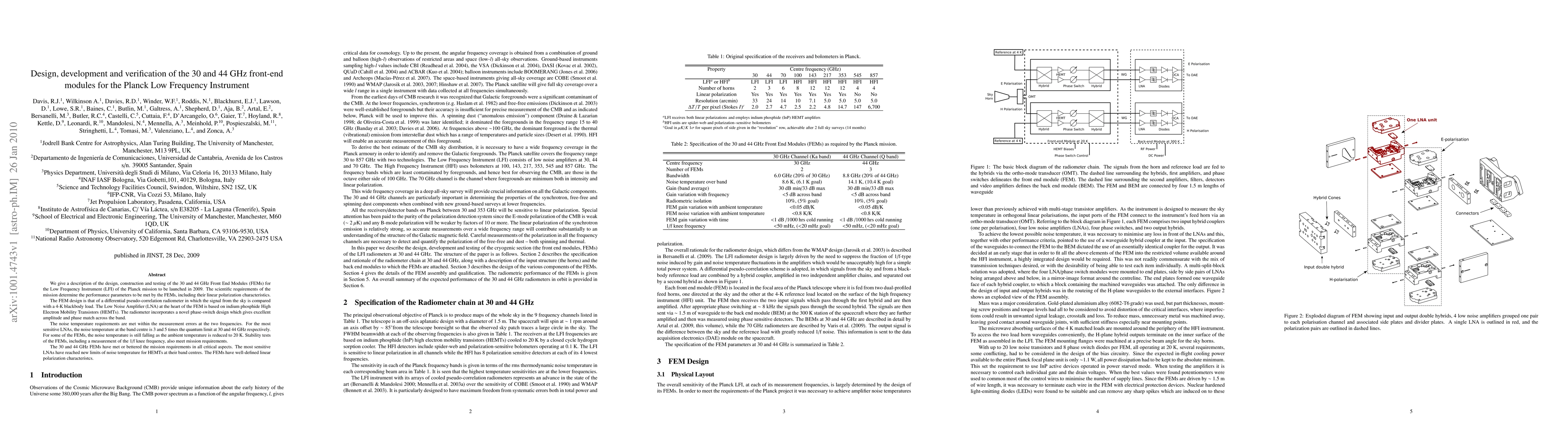 The 30 and 44 GHz Front End Modules for Planck's Low Frequency Instrument met mission requirements, achieving low noise temperatures and stable polarization characteristics at frequencies of up to 3 times the quantum limit.
