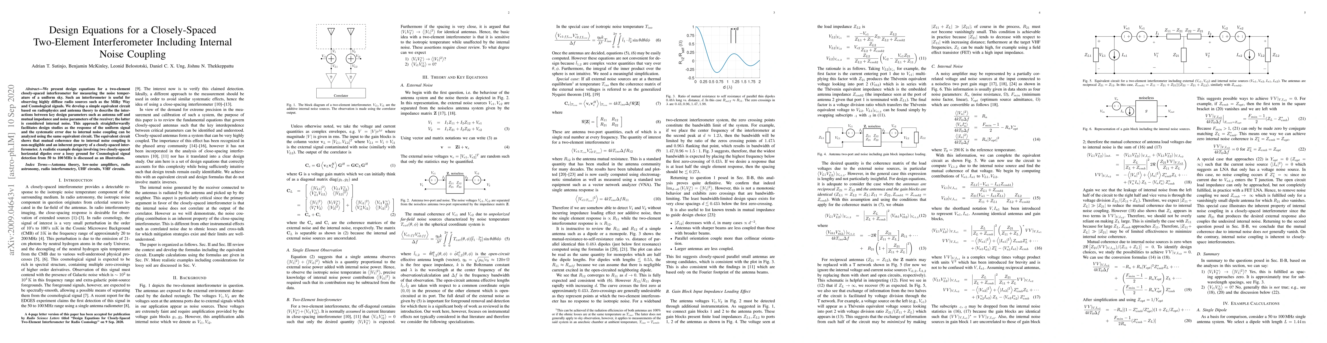This paper develops design equations for a two-element interferometer to measure noise temperature, emphasizing the impact of internal noise coupling. It uses an equivalent circuit based on radiophysics to analyze mutual coherence and design considerations for observing diffuse radio sources.