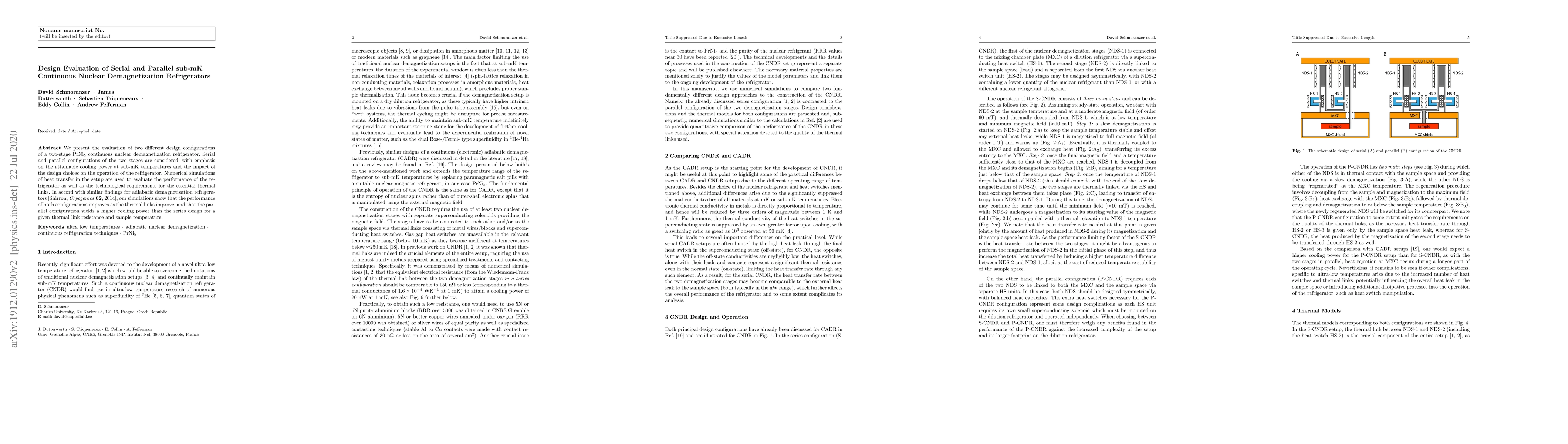 Two-stage PrNi$_5$ continuous nuclear demagnetization refrigerators with serial and parallel designs were evaluated for sub-mK temperatures. The parallel design outperforms the series design in cooling power for a given thermal link resistance and sample temperature.