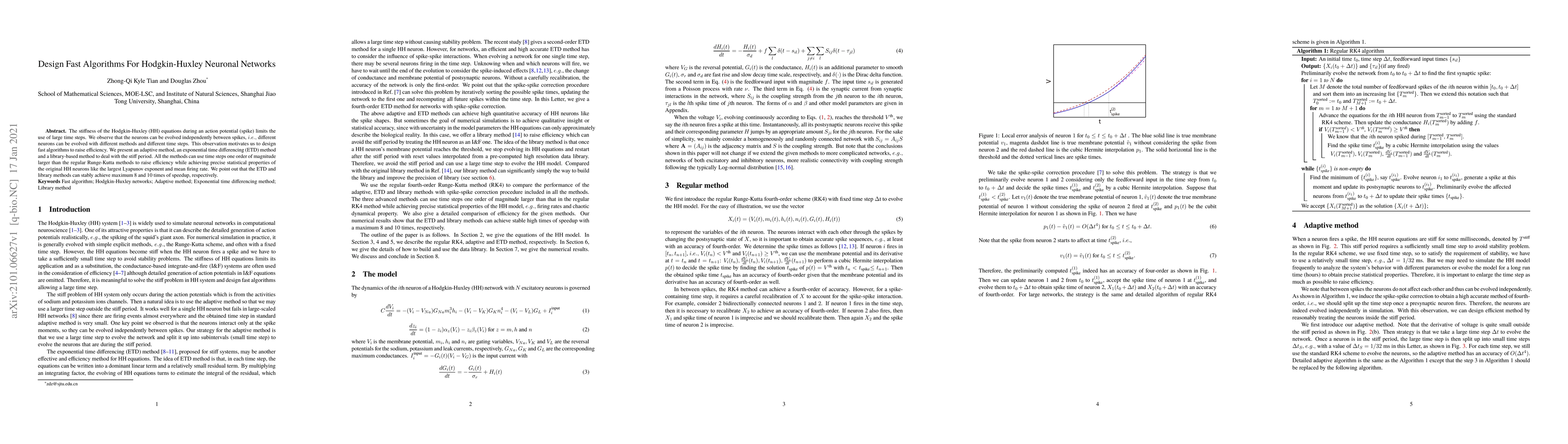 The stiffness of the Hodgkin-Huxley (HH) equations during an action potential (spike) limits the use of large time steps. We observe that the neurons can be evolved independently between spikes, $i.e.,$ different neurons can be evolved with different methods and different time steps. This observation motivates us to design fast algorithms to raise efficiency. We present an adaptive method, an exponential time differencing (ETD) method and a library-based method to deal with the stiff period. All the methods can use time steps one order of magnitude larger than the regular Runge-Kutta methods to raise efficiency while achieving precise statistical properties of the original HH neurons like the largest Lyapunov exponent and mean firing rate. We point out that the ETD and library methods can stably achieve maximum 8 and 10 times of speedup, respectively.