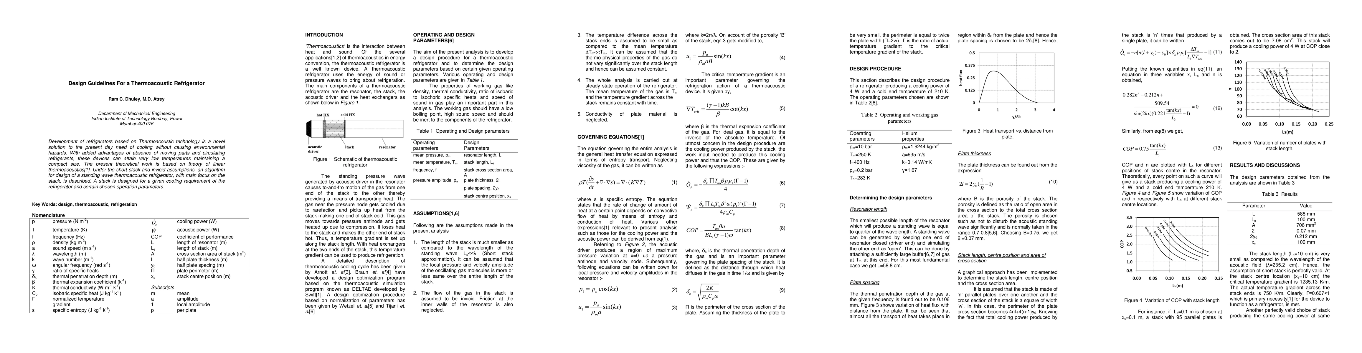 Development of refrigerators based on Thermoacoustic technology is a novel solution to the present day need of cooling without causing environmental hazards. With added advantages of absence of moving parts and circulating refrigerants, these devices can attain very low temperatures maintaining a compact size. The present theoretical work is based on theory of linear thermoacoustics[1]. Under the short stack and invicid assumptions, an algorithm for design of a standing wave thermoacoustic refrigerator, with main focus on the stack, is described. A stack is designed for a given cooling requirement of the refrigerator and certain chosen operation parameters.