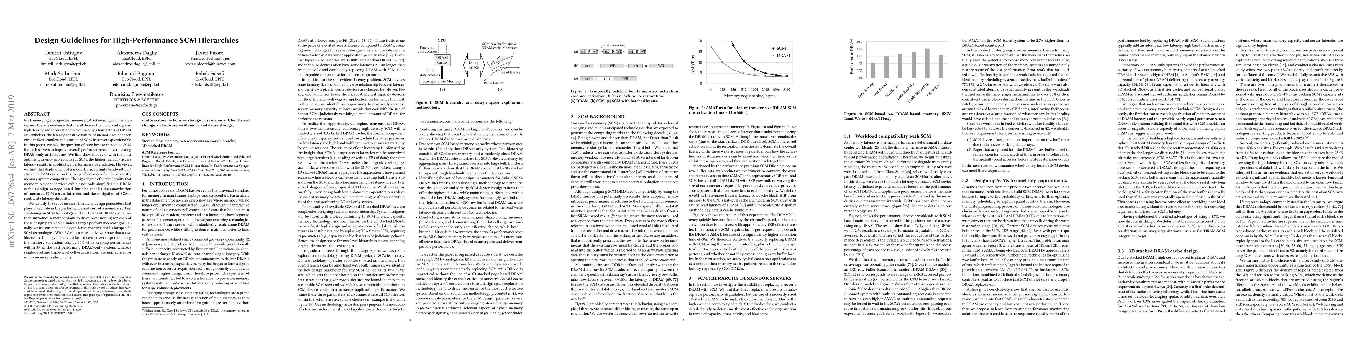 This research identifies that integrating Storage-Class Memory (SCM) in servers for high-performance computing may face latency issues. However, deploying a modest 3D stacked DRAM cache can mitigate these, making SCM-mostly systems competitive. The paper outlines key design parameters for such a hybrid system and presents PCM as a case study, finding a two bits/cell technology as the most cost-effective and performant solution.
