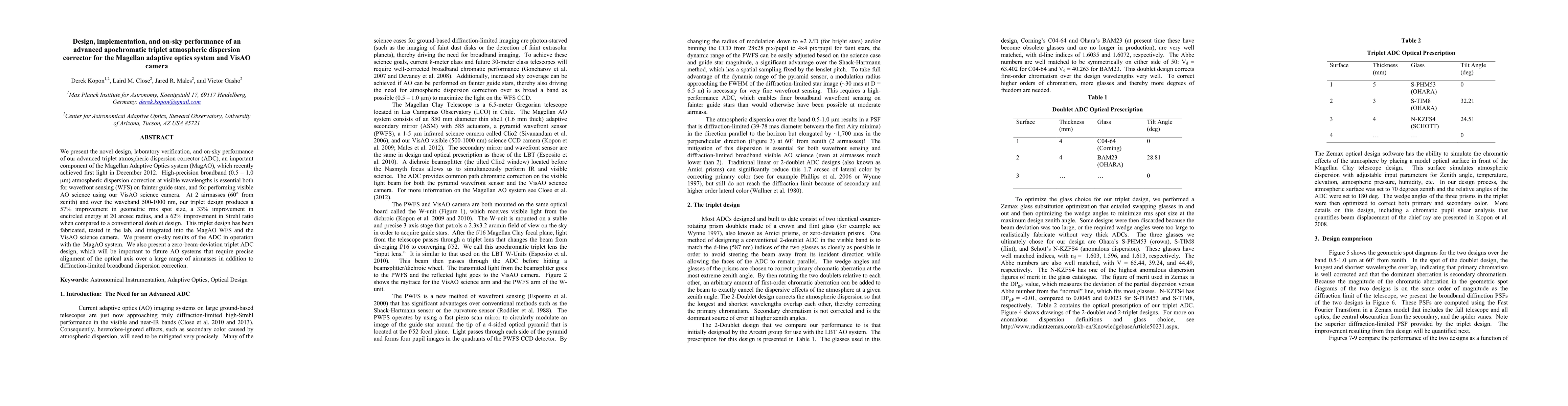 This paper details the design, implementation, and on-sky performance of an advanced triplet atmospheric dispersion corrector (ADC) for the Magellan Adaptive Optics system, achieving significant improvements in wavefront sensing and science imaging. The new triplet design shows a 57% reduction in geometric rms spot size, a 33% increase in encircled energy, and a 62% improvement in Strehl ratio compared to conventional doublet designs.