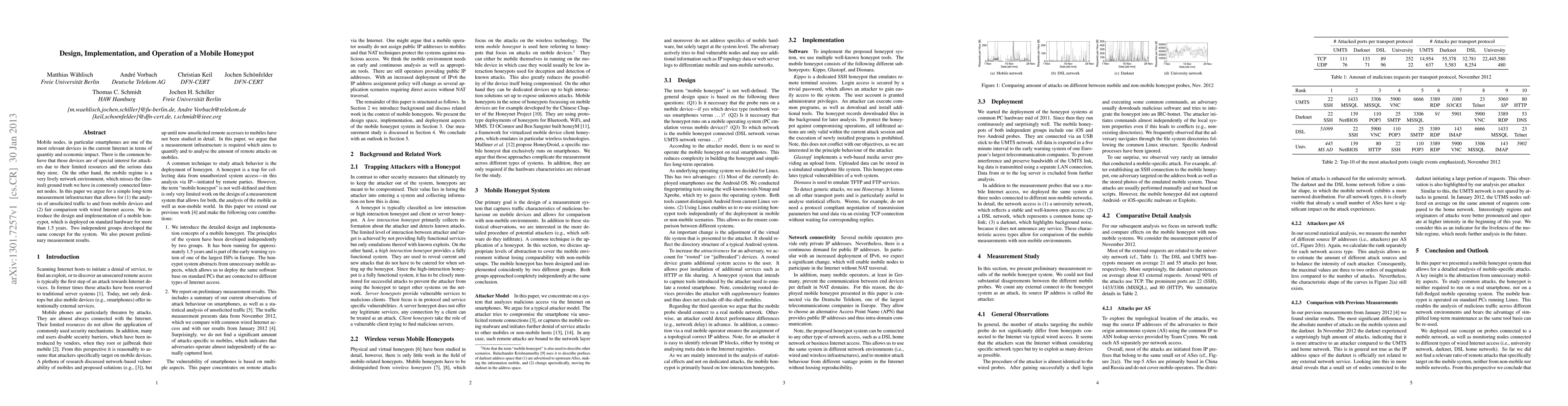 This paper presents the design, implementation, and operation of a mobile honeypot deployed on standard hardware to analyze unsolicited traffic from smartphones and compare it with wired Internet access. Preliminary results from the honeypot, operational for over a year and a half, are also discussed.