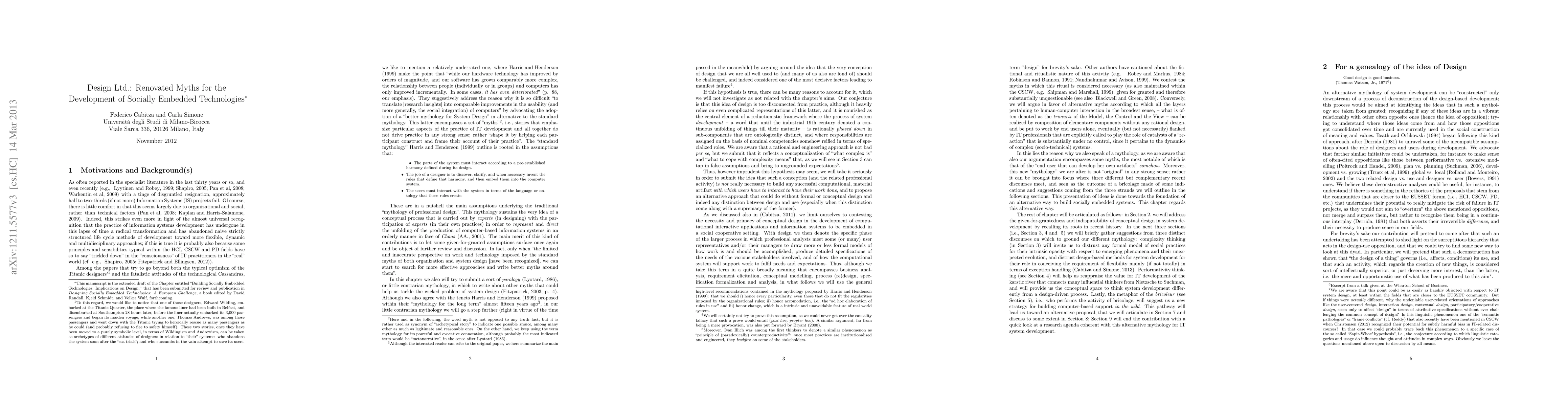 This paper argues that traditional and mainstream mythologies, which have been continually told within the Information Technology domain among designers and advocators of conceptual modelling since the 1960s in different fields of computing sciences, could now be renovated or substituted in the mould of more recent discourses about performativity, complexity and end-user creativity that have been constructed across different fields in the meanwhile. In the paper, it is submitted that these discourses could motivate IT professionals in undertaking alternative approaches toward the co-construction of socio-technical systems, i.e., social settings where humans cooperate to reach common goals by means of mediating computational tools. The authors advocate further discussion about and consolidation of some concepts in design research, design practice and more generally Information Technology (IT) development, like those of: task-artifact entanglement, universatility (sic) of End-User Development (EUD) environments, bricolant/bricoleur end-user, logic of bricolage, maieuta-designers (sic), and laissez-faire method to socio-technical construction. Points backing these and similar concepts are made to promote further discussion on the need to rethink the main assumptions underlying IT design and development some fifty years later the coming of age of software and modern IT in the organizational domain.