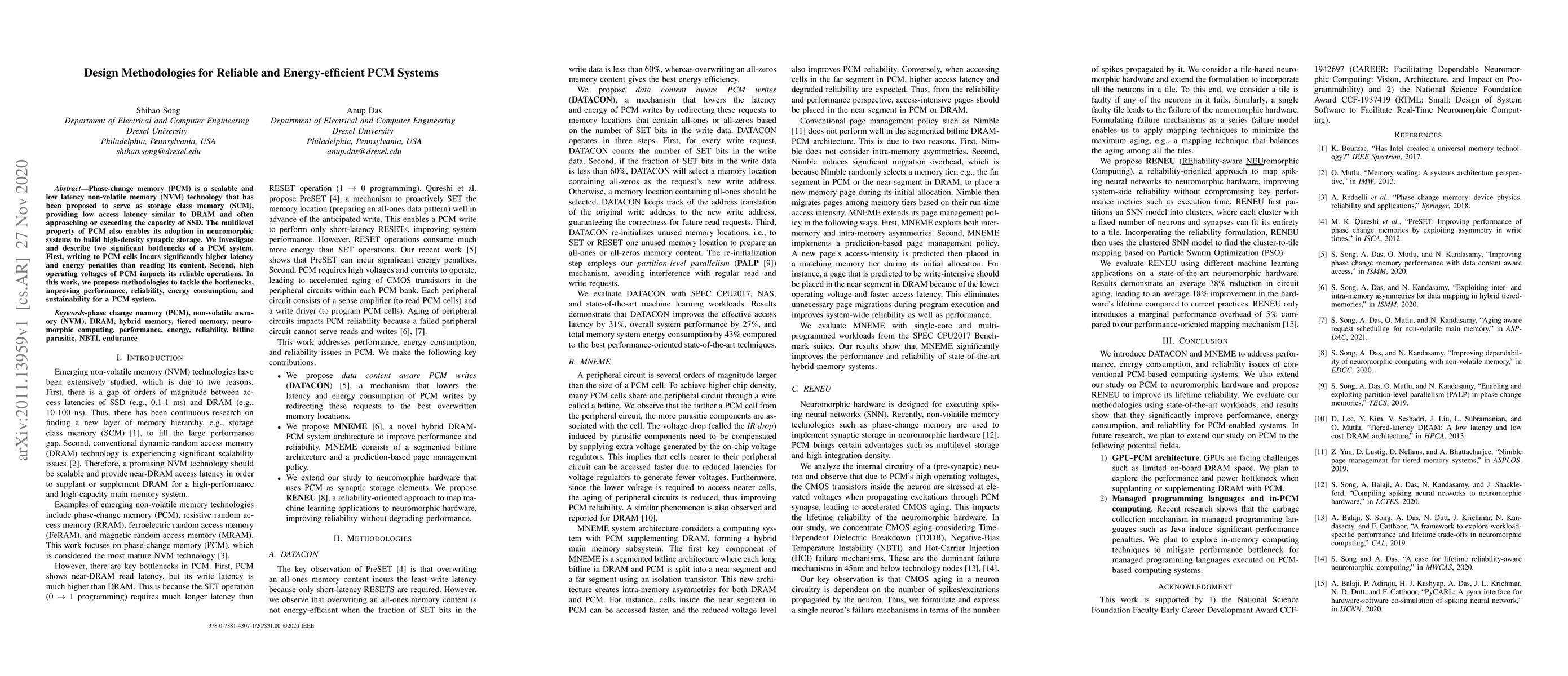 This paper investigates two key challenges in phase-change memory (PCM) systems: high latency and energy consumption during writing, and reliability issues due to high operating voltages. Proposed methodologies aim to enhance performance, reliability, and sustainability for PCM-based storage solutions.