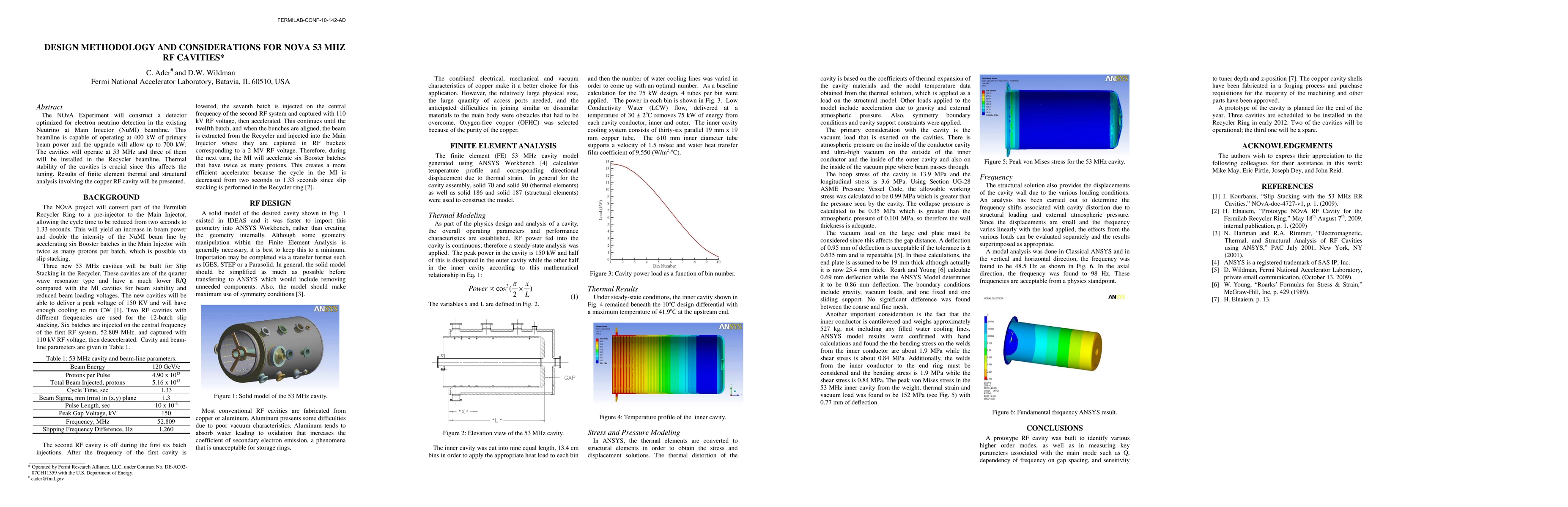 The NO{\nu}A Experiment will construct a detector optimized for electron neutrino detection in the existing Neutrino at Main Injector (NuMI) beamline. This beamline is capable of operating at 400 kW of primary beam power and the upgrade will allow up to 700 kW. The cavities will operate at 53 MHz and three of them will be installed in the Recycler beamline. Thermal stability of the cavities is crucial since this affects the tuning. Results of finite element thermal and structural analysis involving the copper RF cavity will be presented.