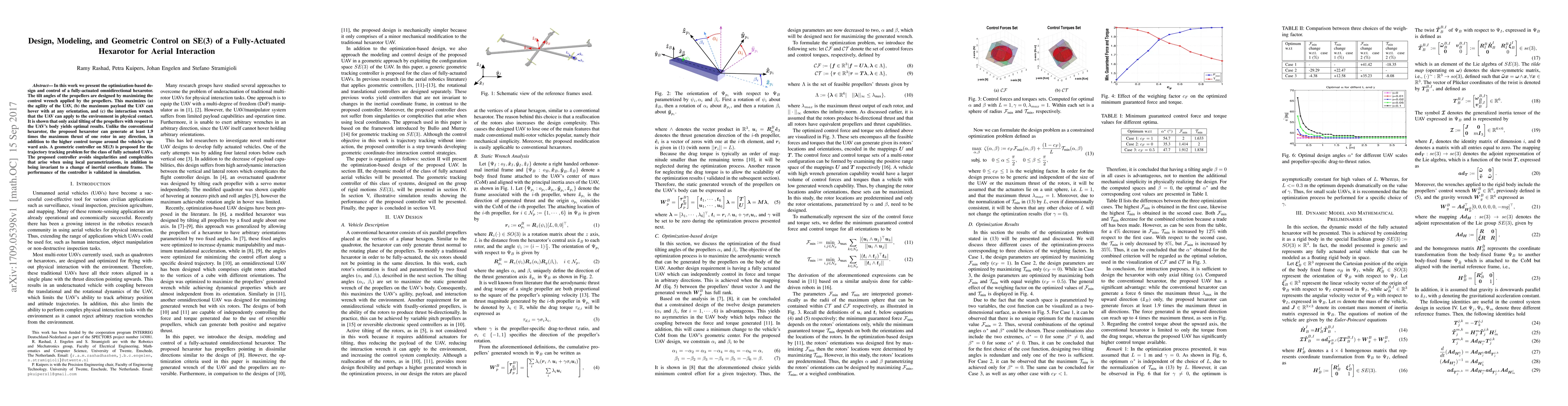 This paper presents an optimization-based design and control strategy for a fully-actuated hexarotor UAV, maximizing its agility, payload capacity, and interaction capabilities. A geometric controller on SE(3) is introduced for trajectory tracking, avoiding singularities and ensuring invariance to coordinate frame changes.