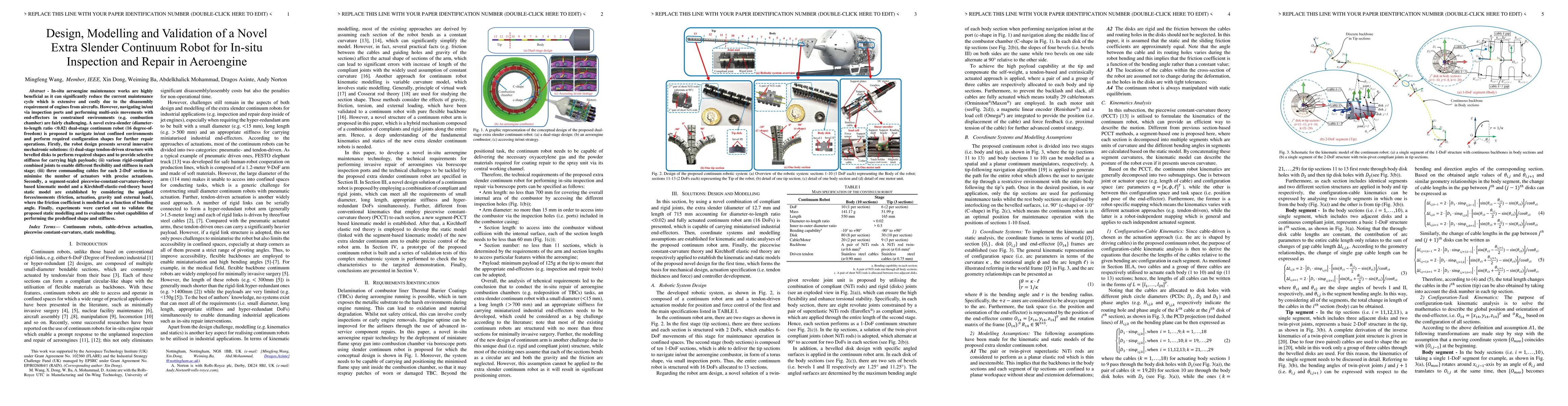 This paper proposes a novel extra-slender continuum robot with 16 degrees of freedom for in-situ aeroengine inspection and repair, featuring innovative mechatronic solutions for navigating confined spaces. The robot's kinematic and static models are validated through experiments to demonstrate its capability to perform required shapes and stiffness.