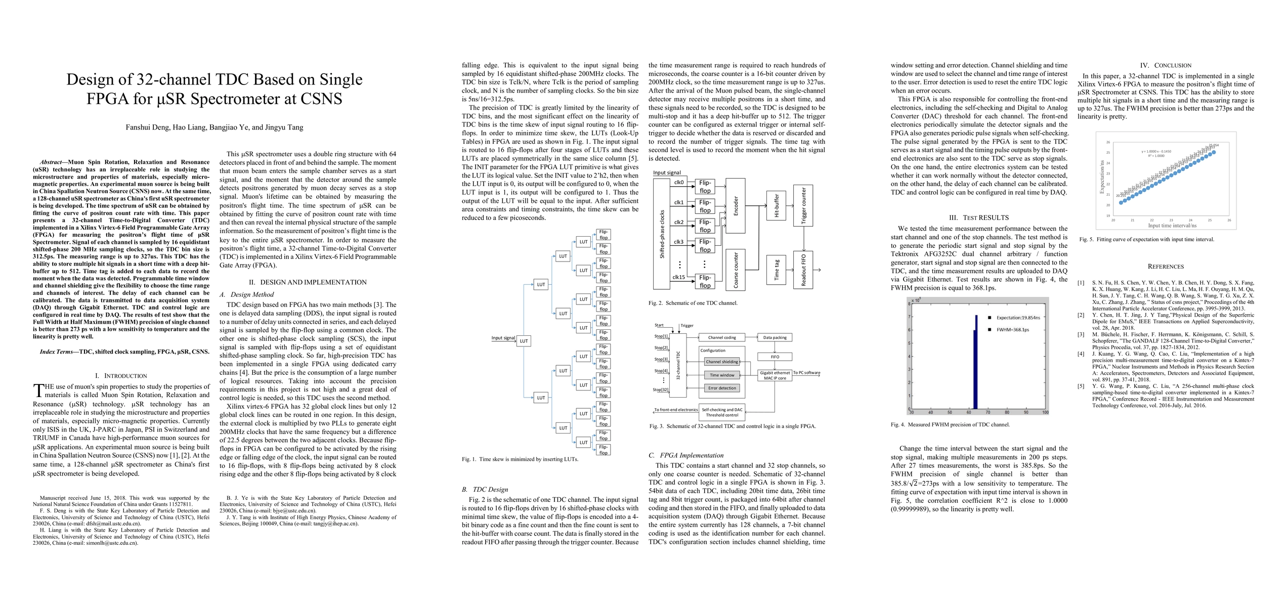 This paper presents a 32-channel Time-to-Digital Converter (TDC) implemented on a single Xilinx Virtex-6 FPGA for the China Spallation Neutron Source's muon spin rotation spectrometer, achieving high precision and flexibility in measuring positron flight times with a bin size of 312.5 ps and a range up to 327 us.