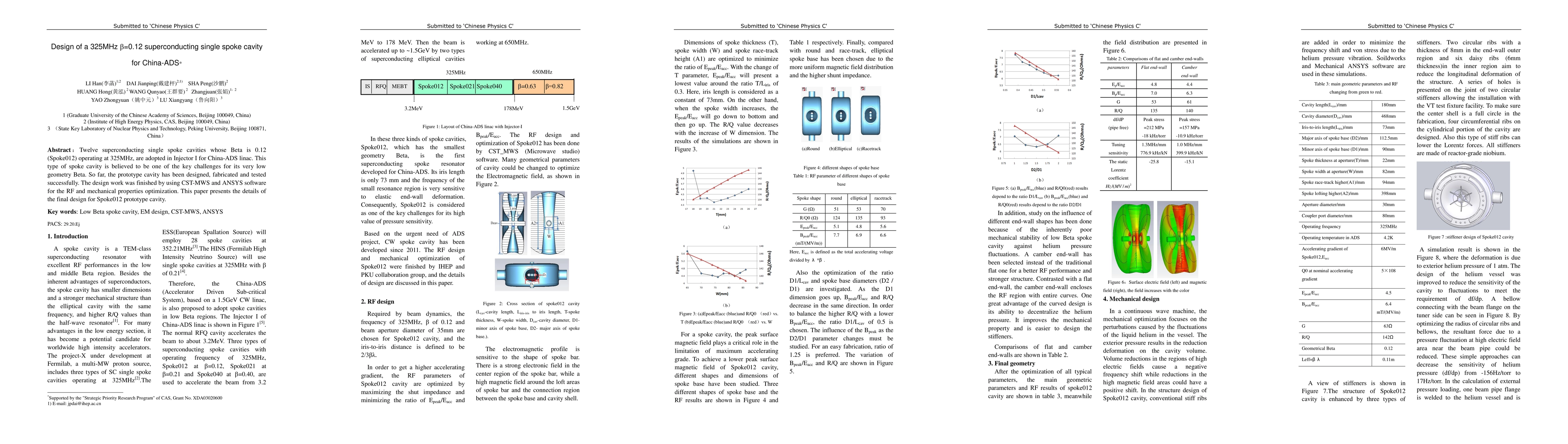 Researchers designed a 325MHz superconducting single spoke cavity with a Beta of 0.12 for the China-ADS linac, using software to optimize its RF and mechanical properties.