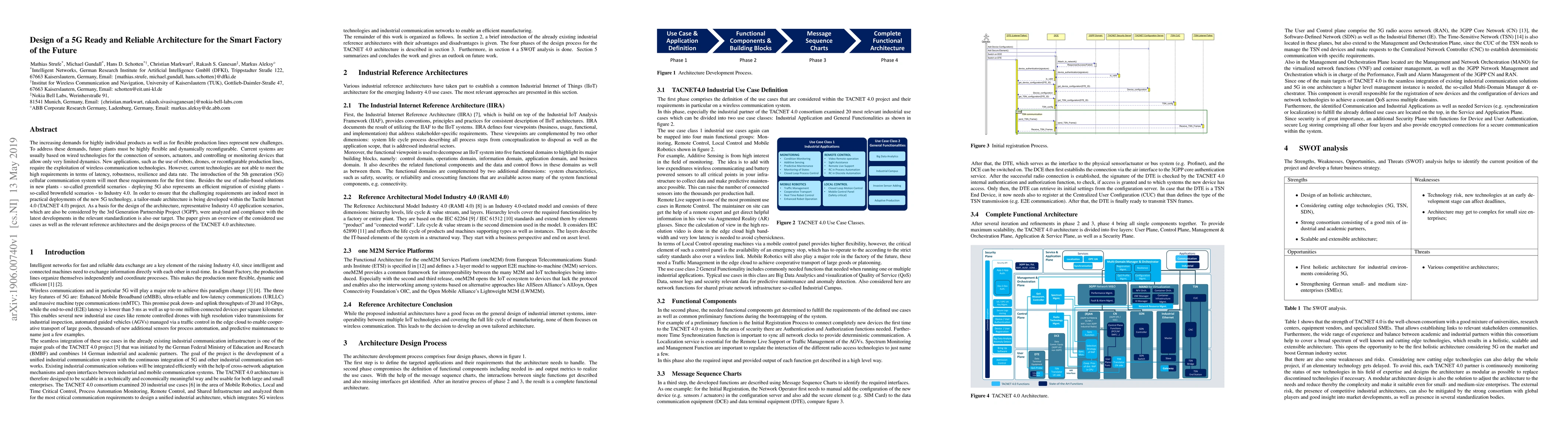 The increasing demands for highly individual products as well as for flexible production lines represent new challenges. To address these demands, future plants must be highly flexible and dynamically reconfigurable. Current systems are usually based on wired technologies for the connection of sensors, actuators, and controlling or monitoring devices that allow only very limited dynamics. New applications, such as the use of robots, drones, or reconfigurable production lines, require the exploitation of wireless communication technologies. However, current technologies are not able to meet the high requirements in terms of latency, robustness, resilience and data rate. The introduction of the 5th generation (5G) cellular communication system will meet these requirements for the first time. Besides the use of radio-based solutions in new plants - so-called greenfield scenarios - deploying 5G also represents an efficient migration of existing plants - so-called brownfield scenarios - to Industry 4.0. In order to ensure that the challenging requirements are indeed meet in practical deployments of the new 5G technology, a tailor-made architecture is being developed within the Tactile Internet 4.0 (TACNET 4.0) project. As a basis for the design of the architecture, representative Industry 4.0 application scenarios, which are also be considered by the 3rd Generation Partnership Project (3GPP), were analyzed and compliance with the latest developments in the relevant standardization is also our target. The paper gives an overview of the considered use cases as well as the relevant reference architectures and the design process of the TACNET 4.0 architecture.