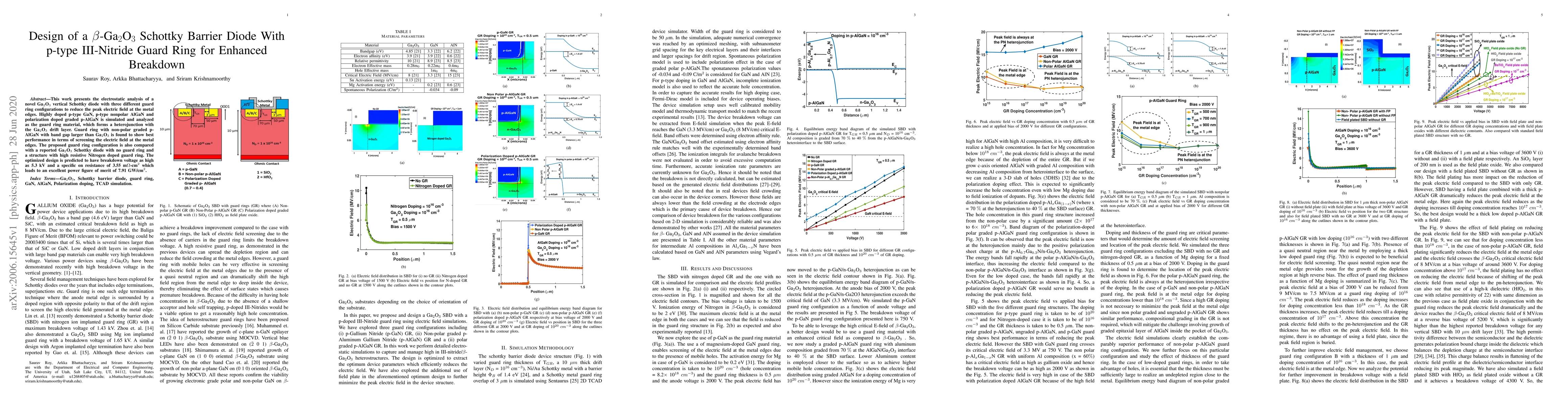 This work presents the electrostatic analysis of a novel Ga$_2$O$_3$ vertical Schottky diode with three different guard ring configurations to reduce the peak electric field at the metal edges. Highly doped p-type GaN, p-type nonpolar AlGaN and polarization doped graded p-AlGaN are simulated and analyzed as the guard ring material, which forms a heterojunction with the Ga$_2$O$_3$ drift layer. Guard ring with non-polar graded p-AlGaN with a bandgap larger than Ga$_2$O$_3$ is found to show the best performance in terms of screening the electric field at the metal edges. The proposed guard ring configuration is also compared with a reported Ga$_2$O$_3$ Schottky diode with no guard ring and a structure with a high resistive Nitrogen-doped guard ring. The optimized design is predicted to have breakdown voltage as high as 5.3 kV and a specific on-resistance of 3.55 m$\Omega$-cm$^2$ which leads to an excellent power figure of merit of 7.91 GW/cm$^2$.