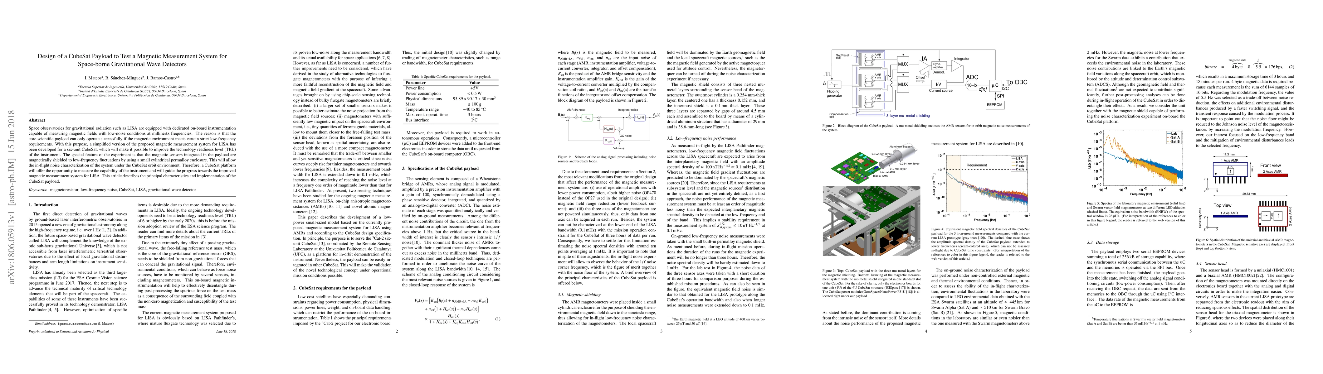 A CubeSat payload is designed to test a magnetic measurement system for LISA space-borne gravitational wave detectors, aiming to improve technology readiness level and in-flight noise characterization.